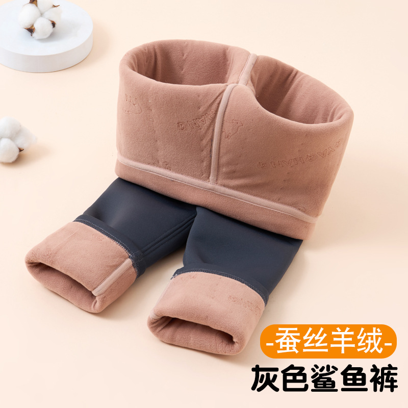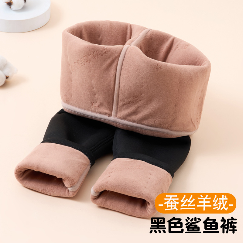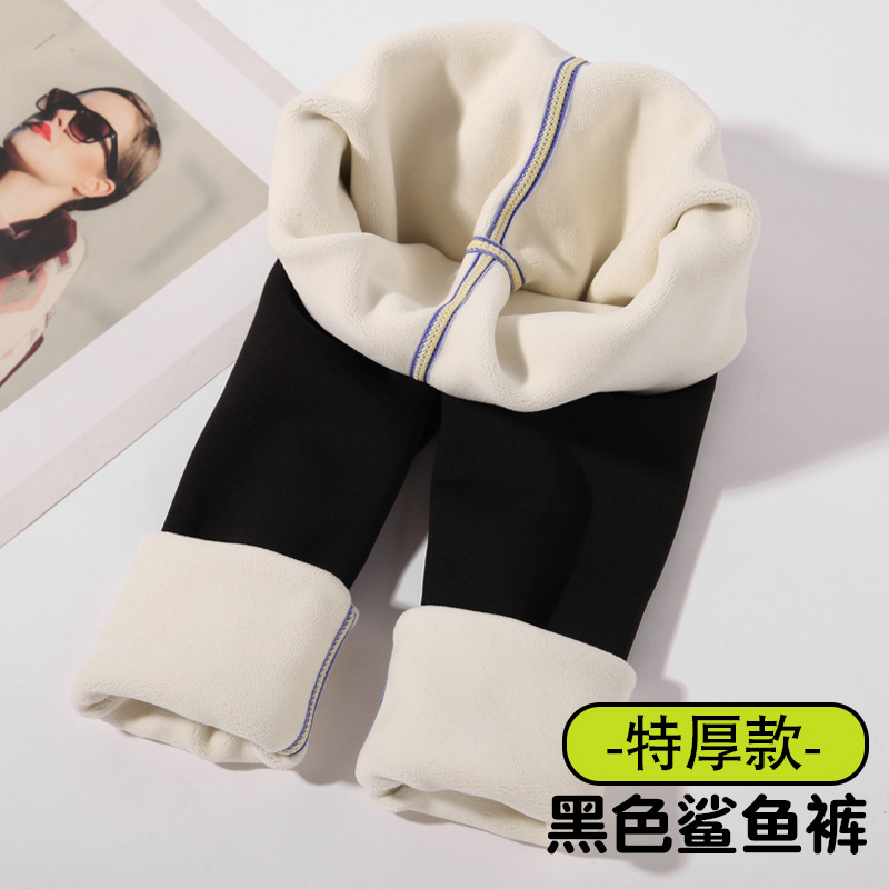 소녀 레깅스 기모 두꺼운 상어 바지 겨울 외부 착용 면 바지 기모 중대형 어린이 울 실크 따뜻한 바지