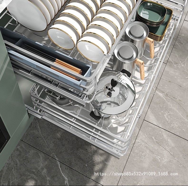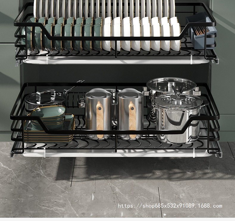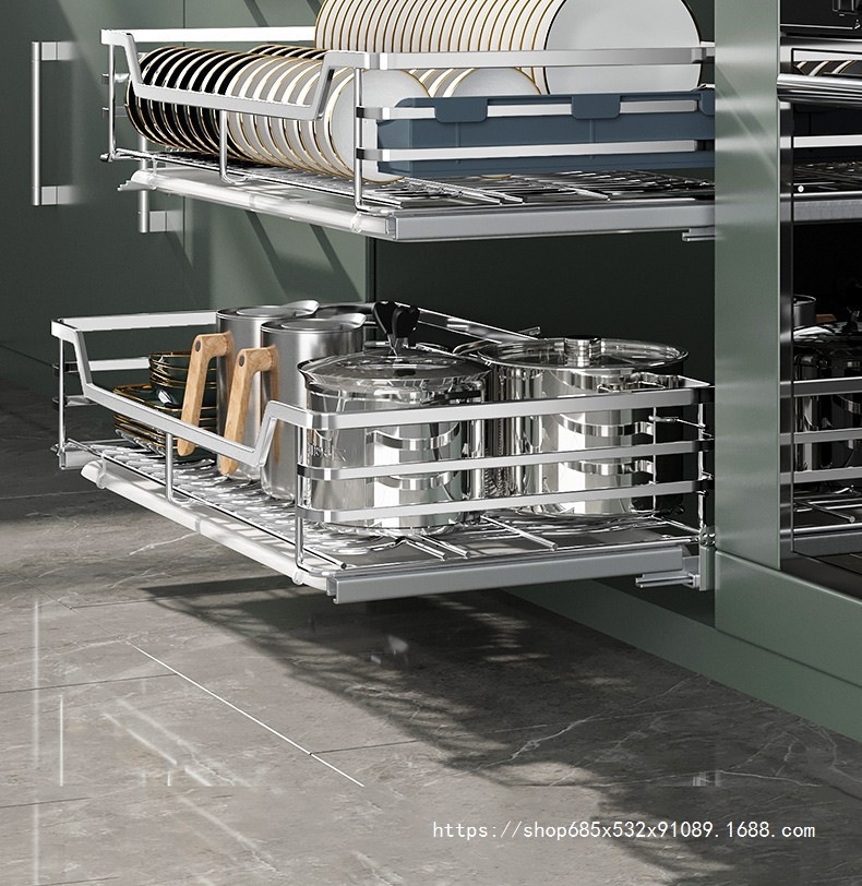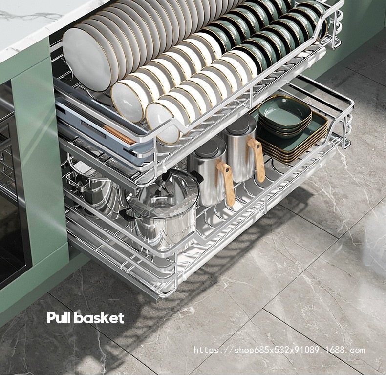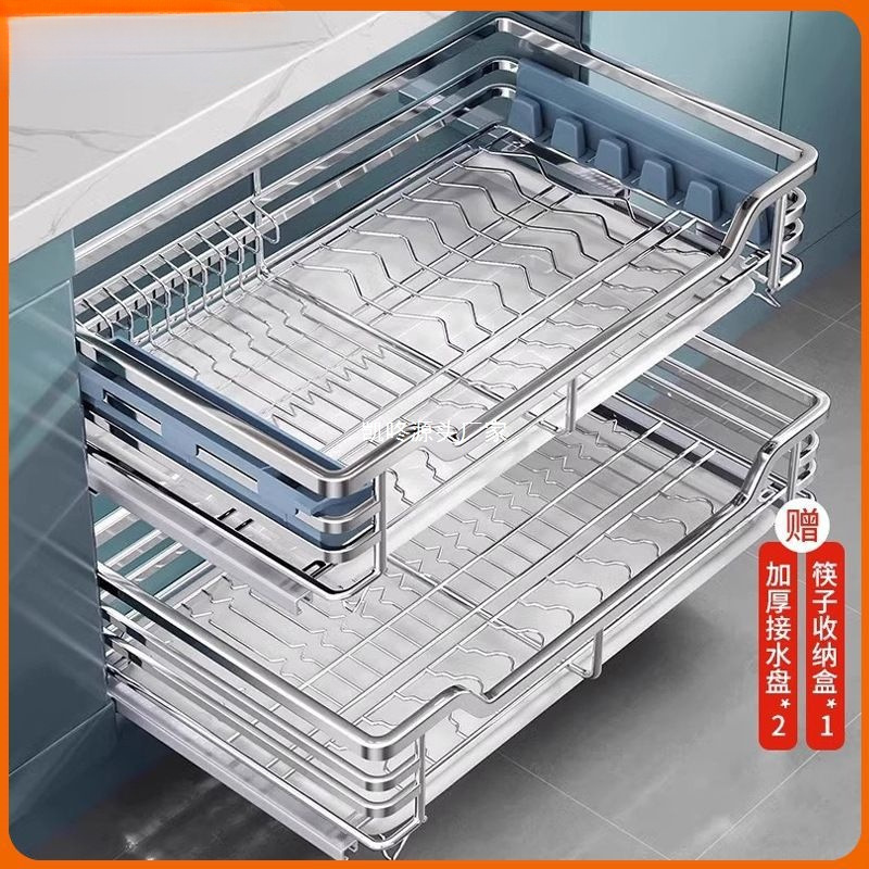 304 스테인레스 스틸 주방 조미료 캐비닛 서랍 접시 랙 더블 솔리드 풀 다운 보관 그릇 바구니