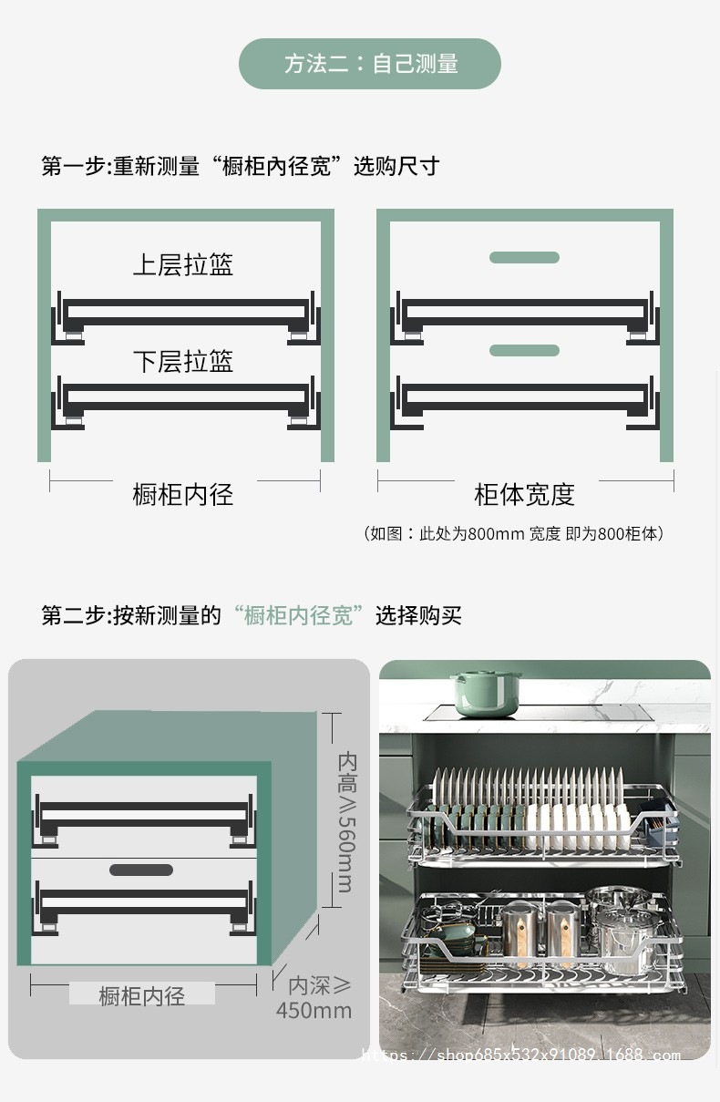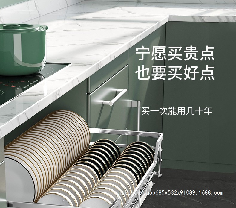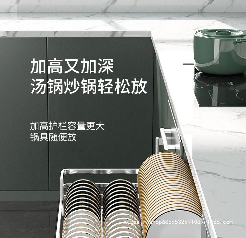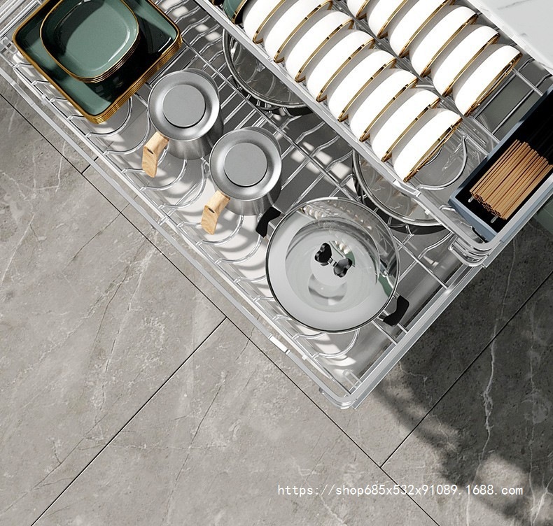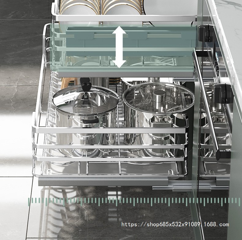 304 스테인레스 스틸 주방 조미료 캐비닛 서랍 접시 랙 더블 솔리드 풀 다운 보관 그릇 바구니
