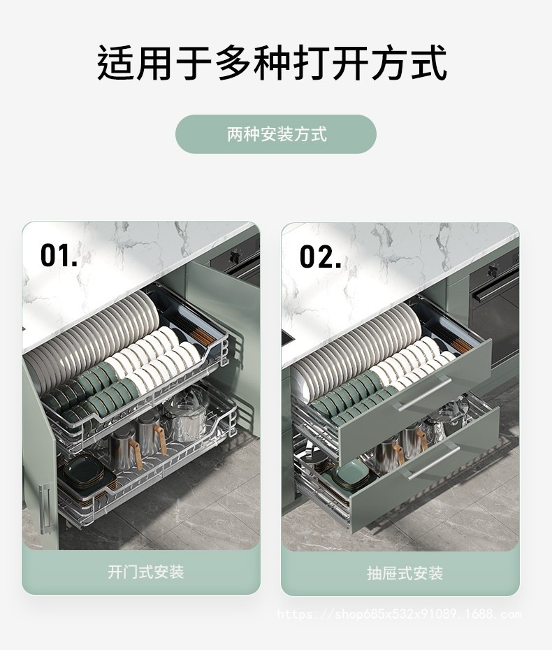 304 스테인레스 스틸 주방 조미료 캐비닛 서랍 접시 랙 더블 솔리드 풀 다운 보관 그릇 바구니스토어 가기