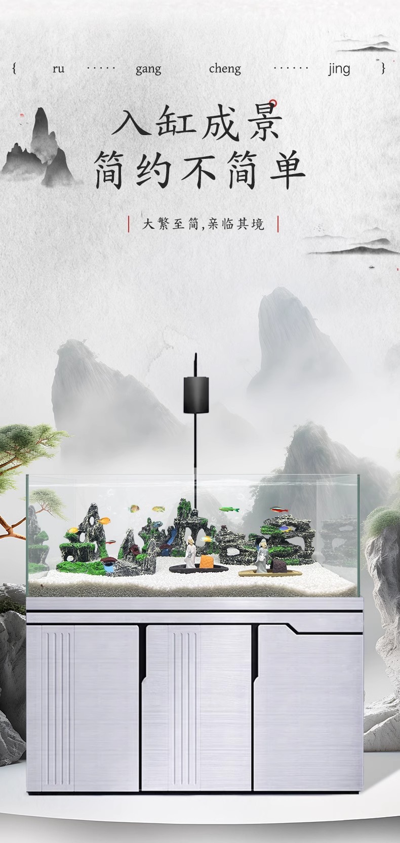 물고기 탱크 바위 탈출 조경 수지 산 물 시뮬레이션 세트 실내 장식 국가 스타일 공예 장식품