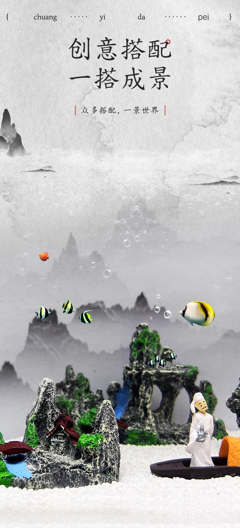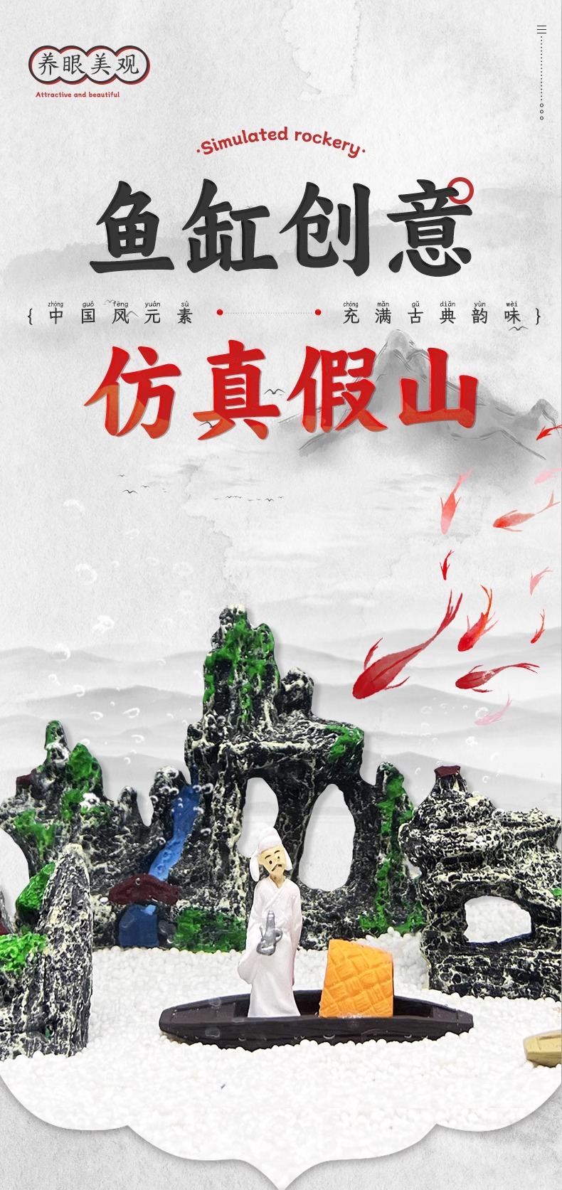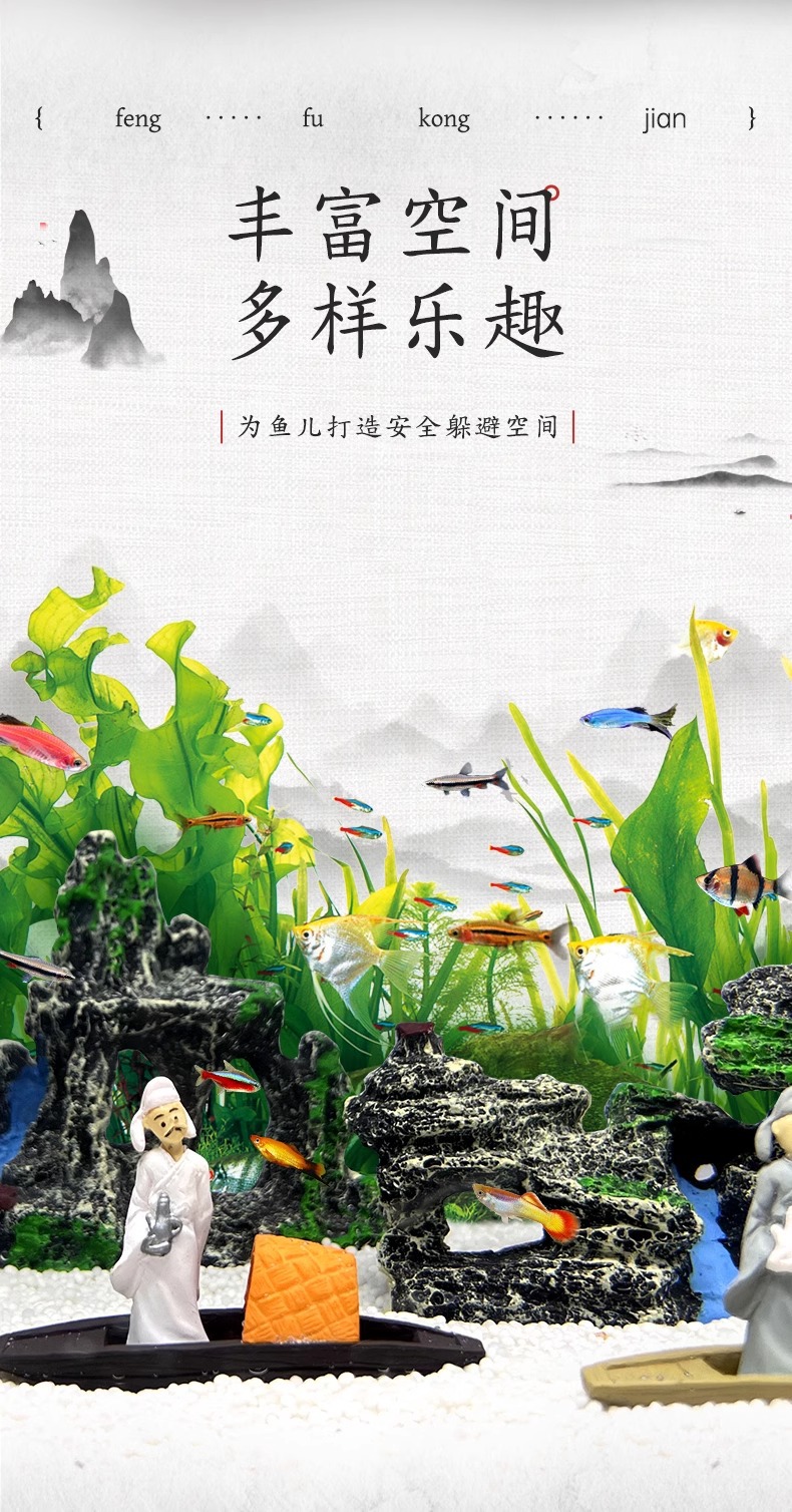 물고기 탱크 바위 탈출 조경 수지 산 물 시뮬레이션 세트 실내 장식 국가 스타일 공예 장식품스토어 가기