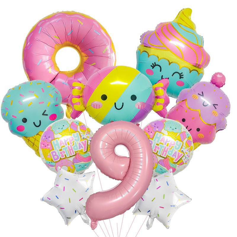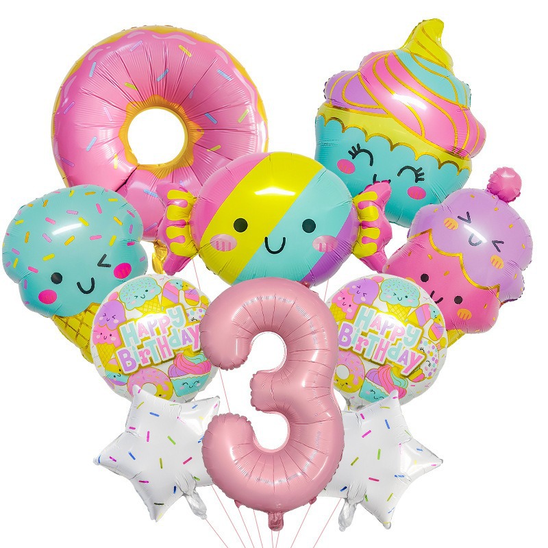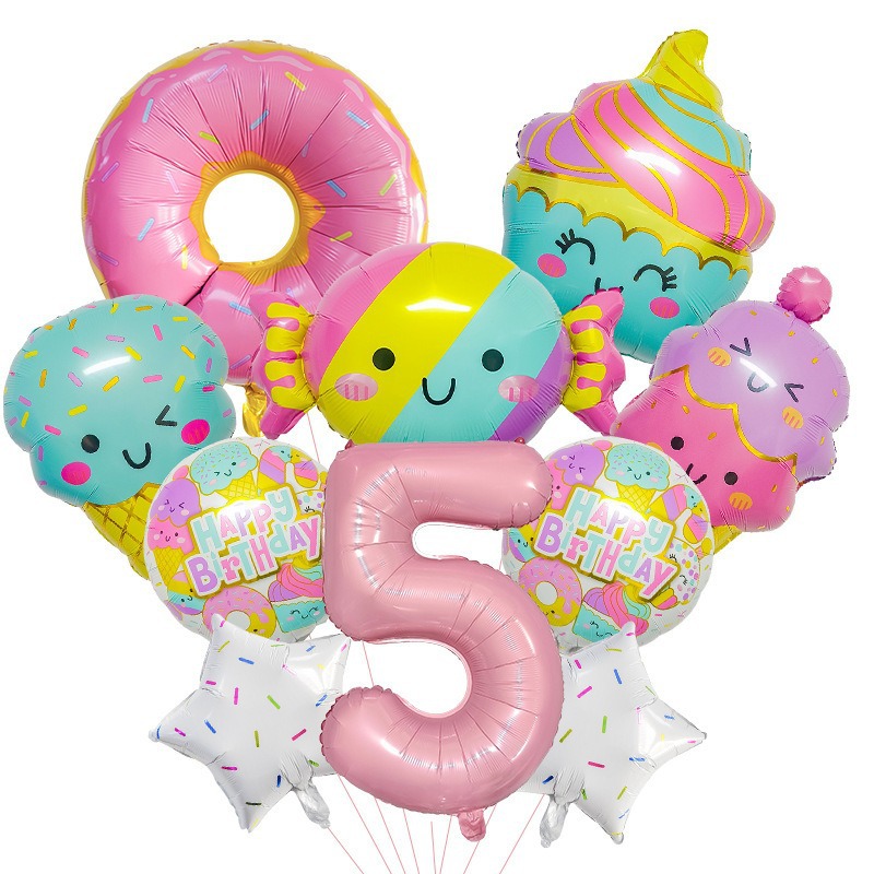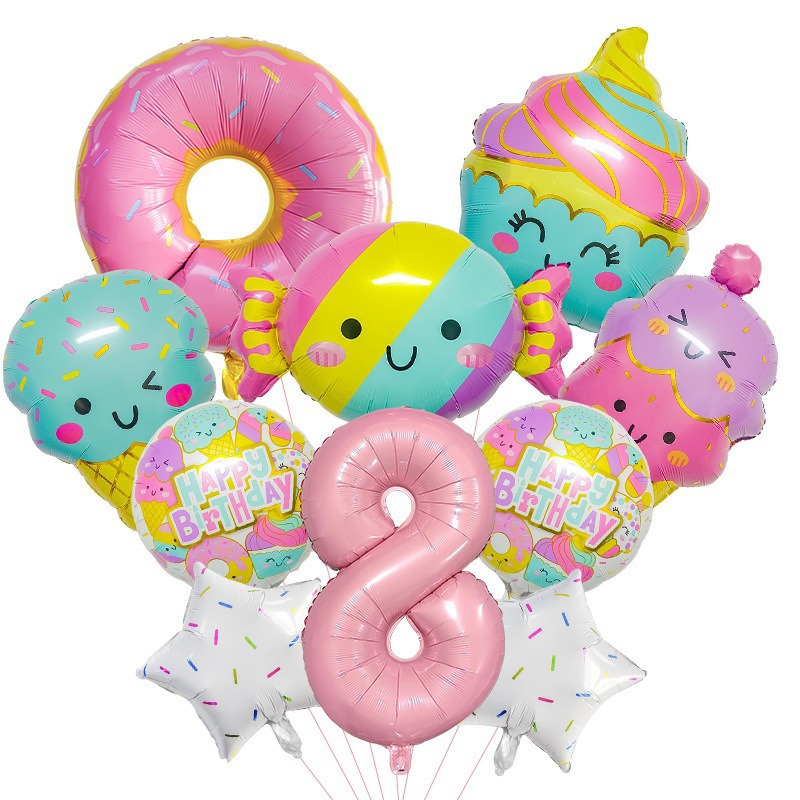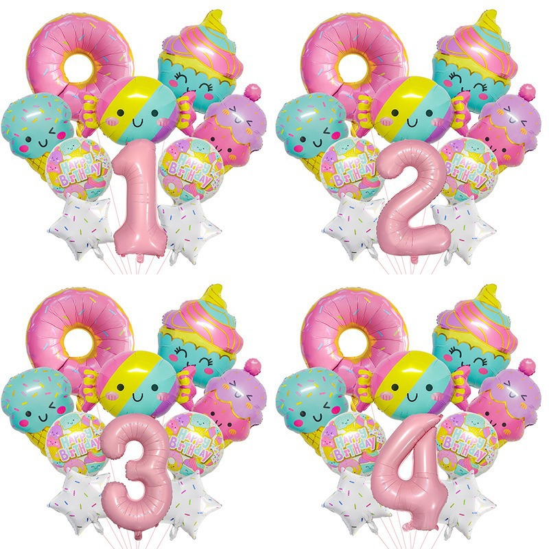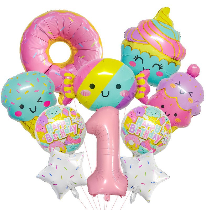 새로운 귀여운 사탕 아이스크림 풍선 세트 어린이 생일 1 년 장면 레이아웃 알루미늄 금형 풍선 장식 용품스토어 가기
