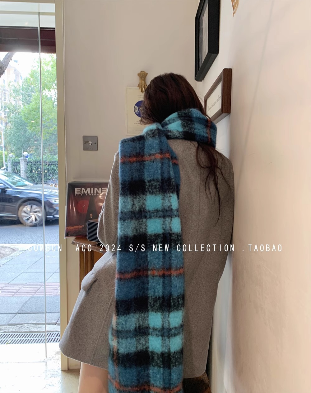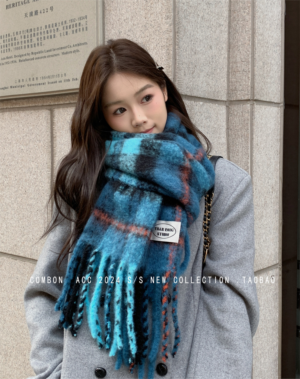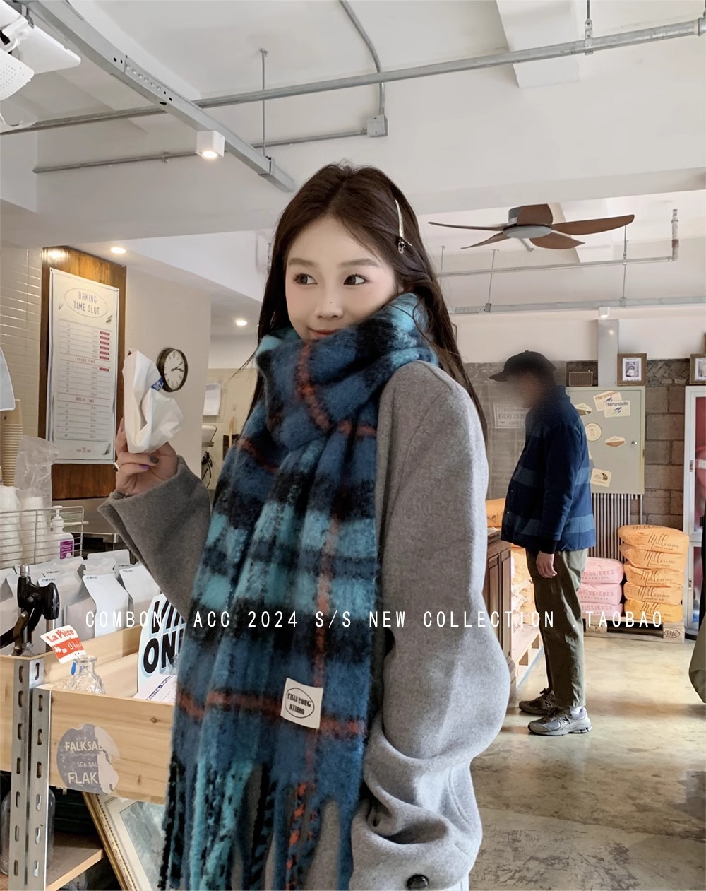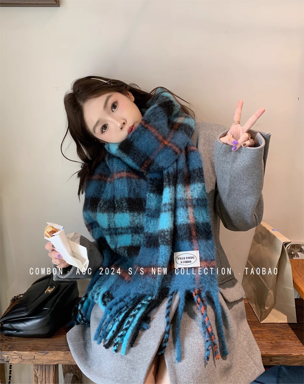 한국 드라마 분위기 블루 스카프 여성 겨울 긴 따뜻한 모조 캐시미어 스카프 남학생 방풍 목도리 확인