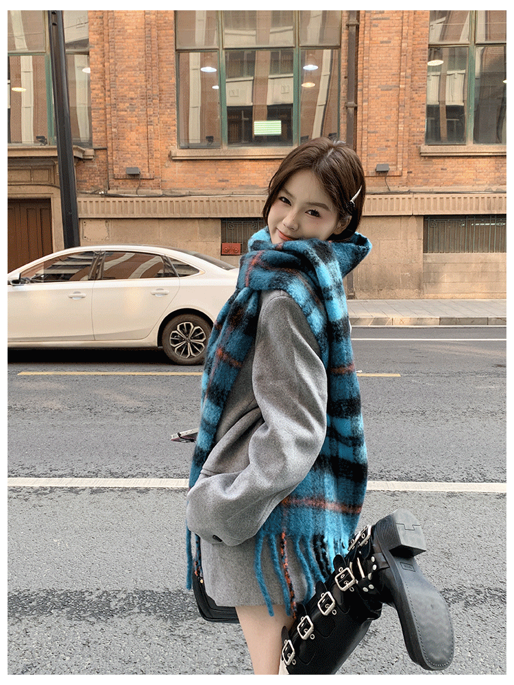 한국 드라마 분위기 블루 스카프 여성 겨울 긴 따뜻한 모조 캐시미어 스카프 남학생 방풍 목도리 확인스토어 가기