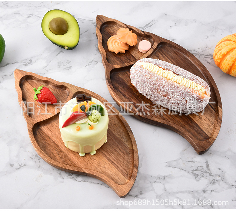 아카시아 나무 일본식 작은 나무 접시 국경 오후 차 커피 미식가 사진 소품 단단한 나무 디스크 타원형 나무 트레이스토어 가기