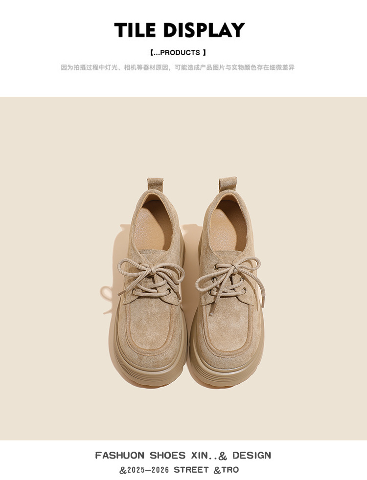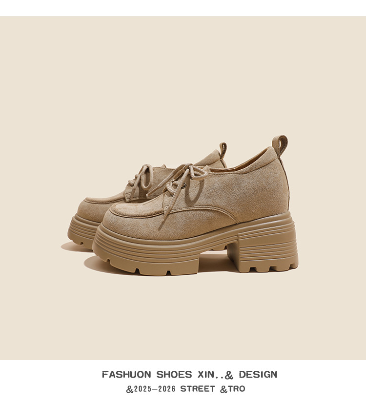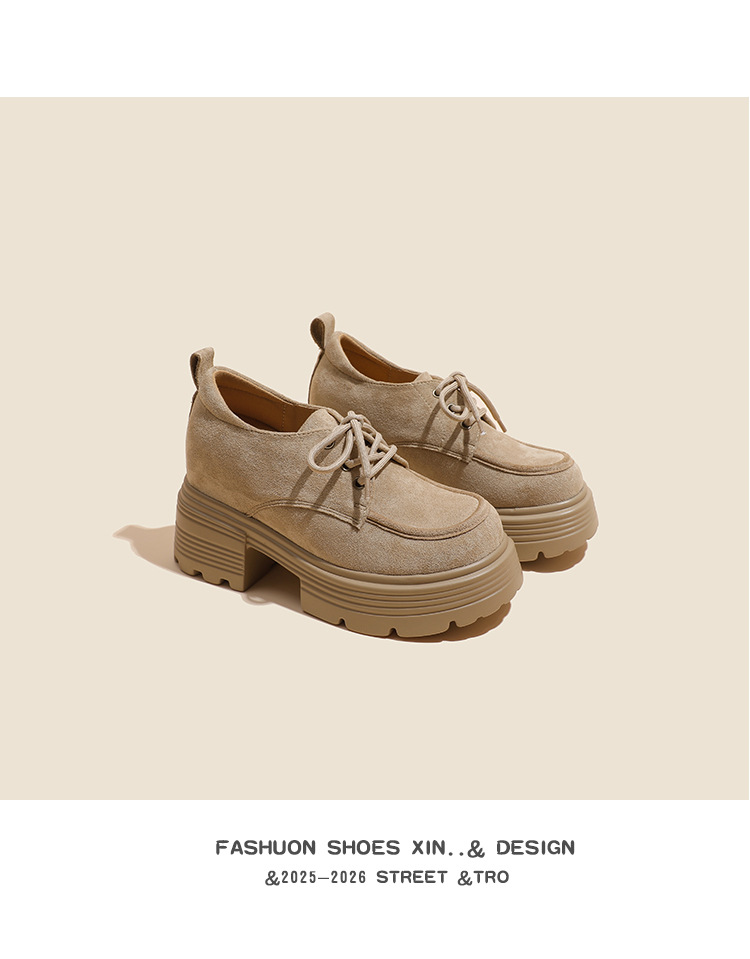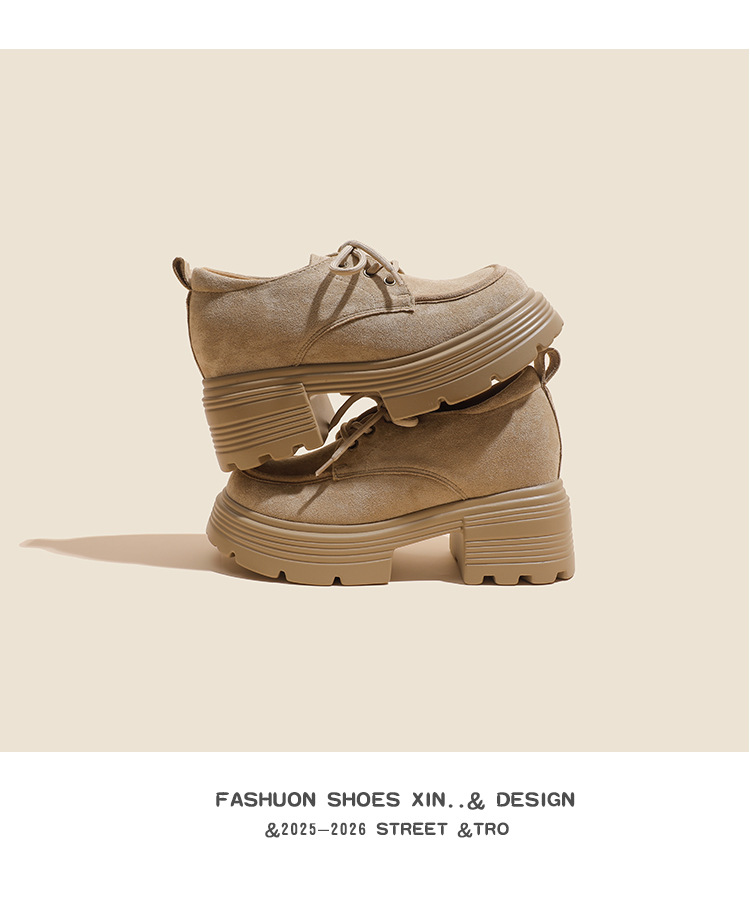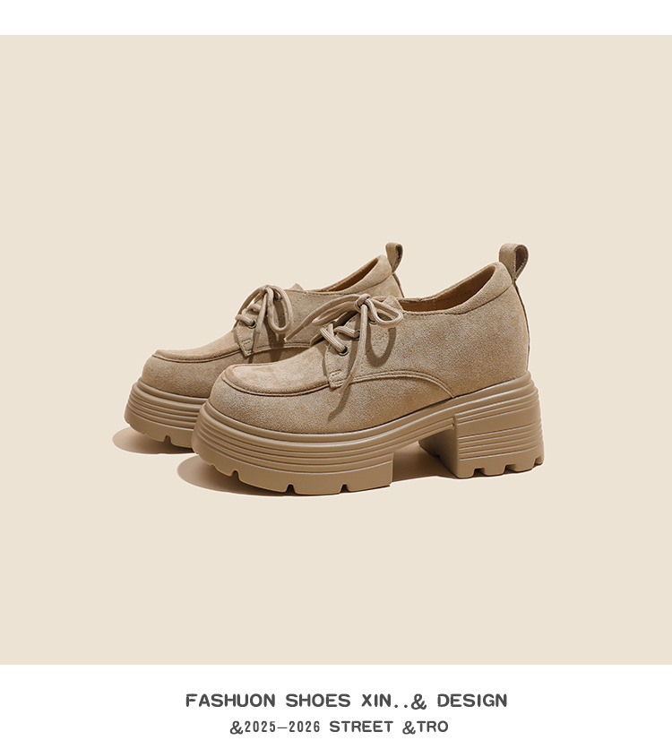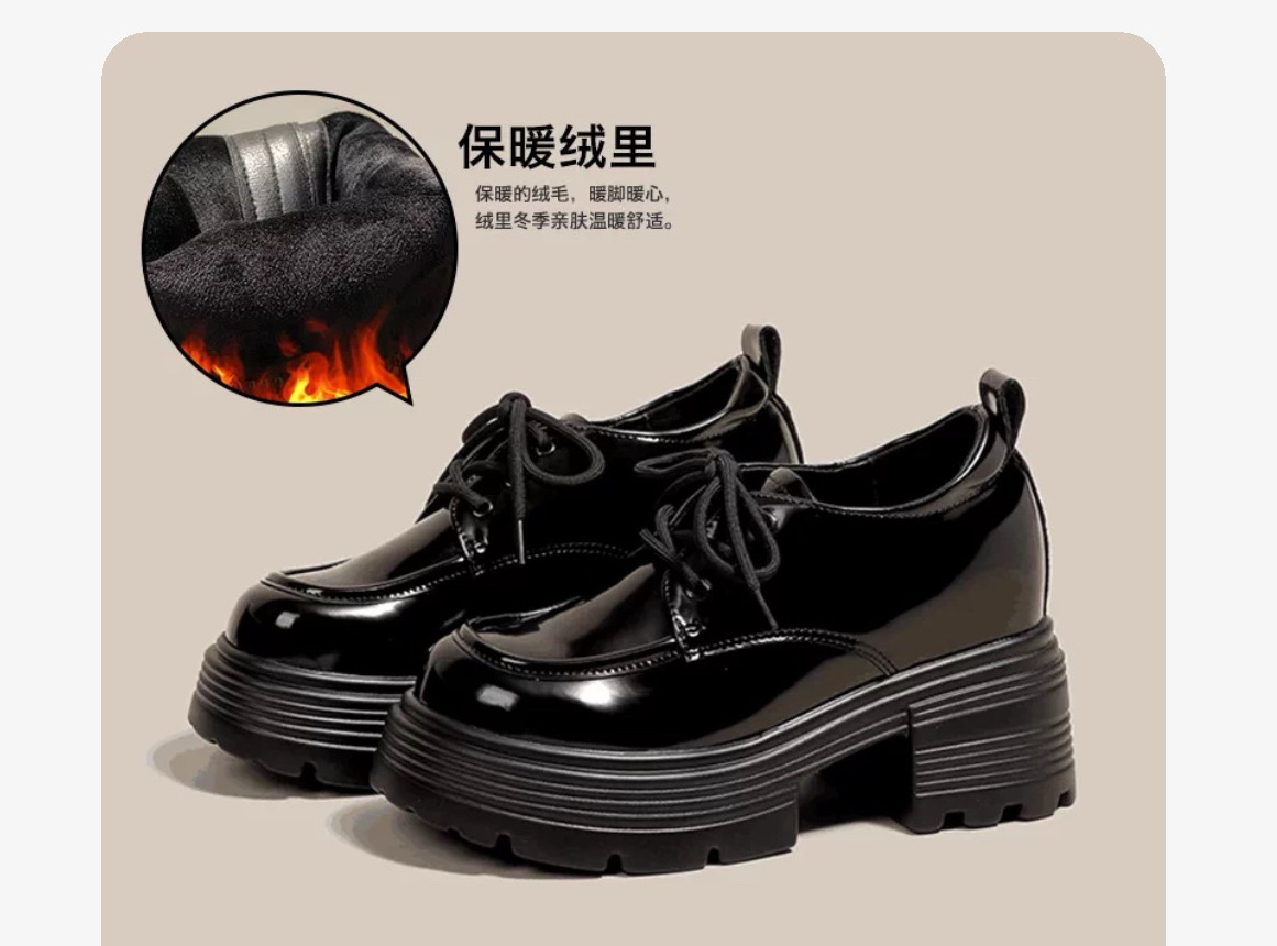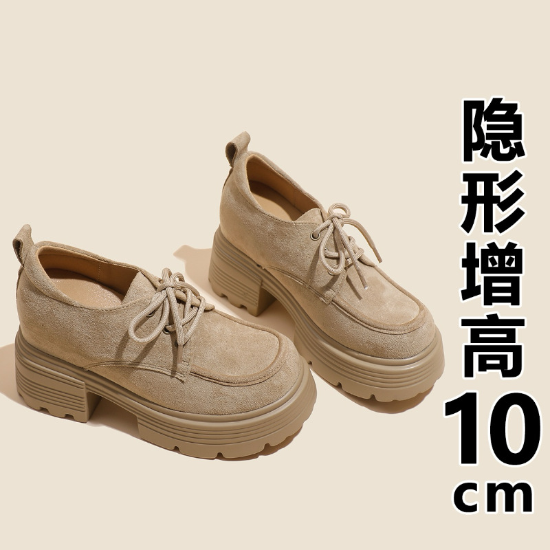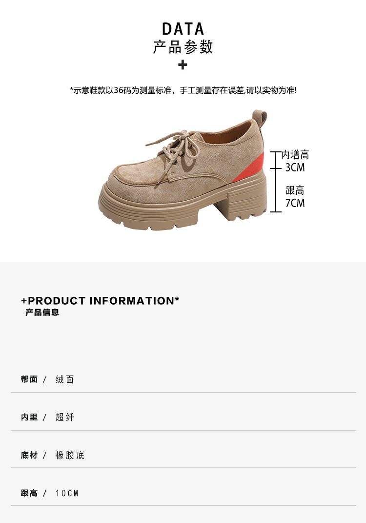 재고 있음] 여성용 키높이 슈즈, 브리티시 스타일, 깊은 입구, 두꺼운 굽, 하이힐, 레이스업 3233, 작은 사이즈, 두꺼운 밑창, 작은 가죽신스토어 가기