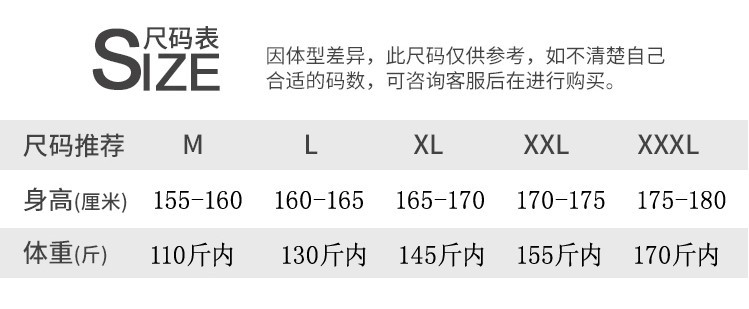 • 남성 3XL【 72.5-77.5kg 이너웨어】
