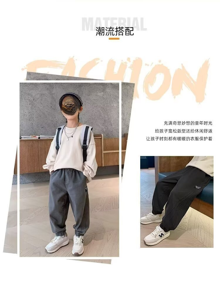 아동복 소년 쿠션 바지 2024 년부터 새로운 가을 및 겨울 스포츠 기모 유행하는 캐주얼 바지스토어 가기