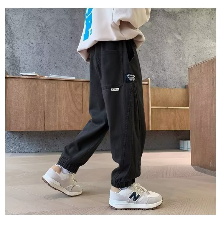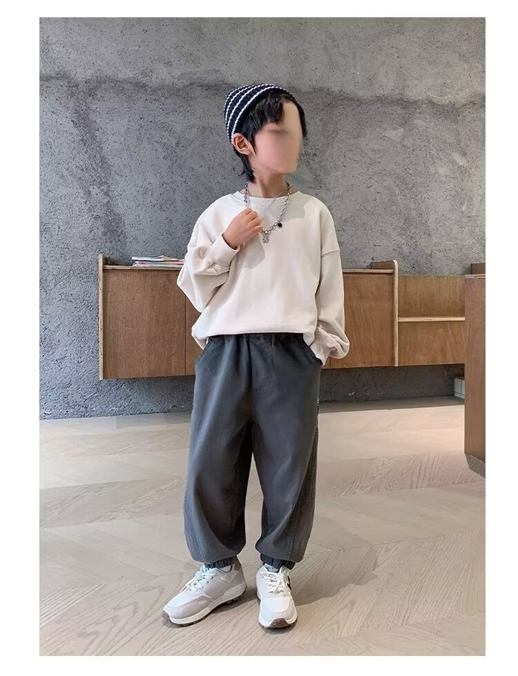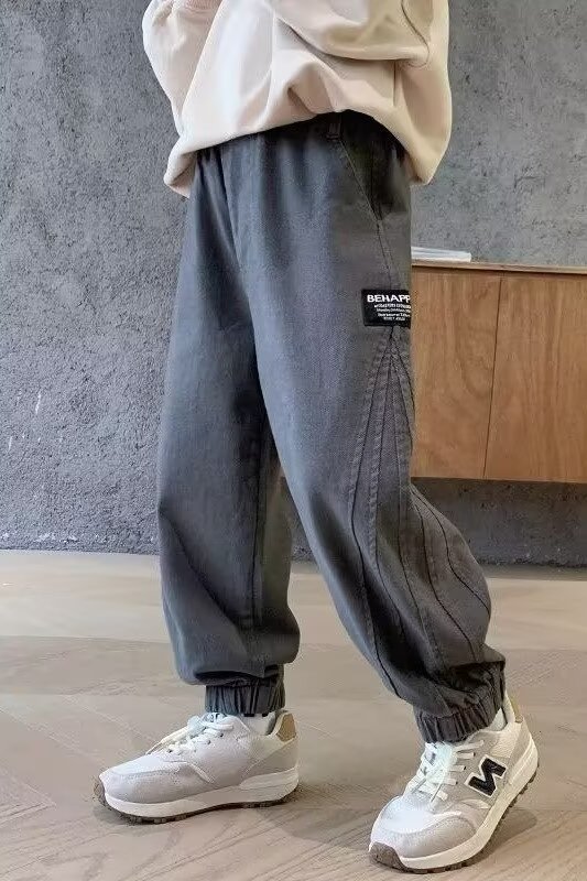 아동복 소년 쿠션 바지 2024 년부터 새로운 가을 및 겨울 스포츠 기모 유행하는 캐주얼 바지