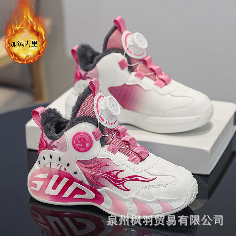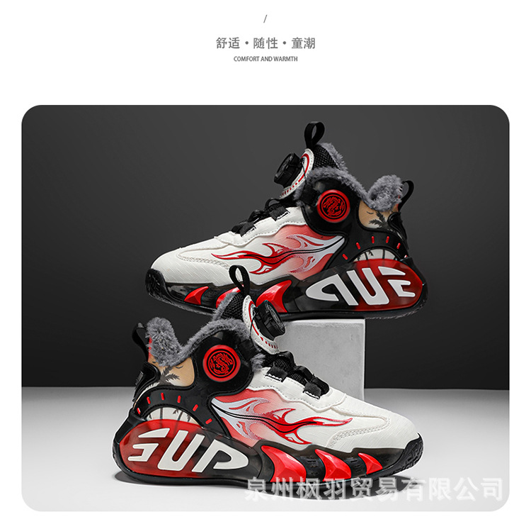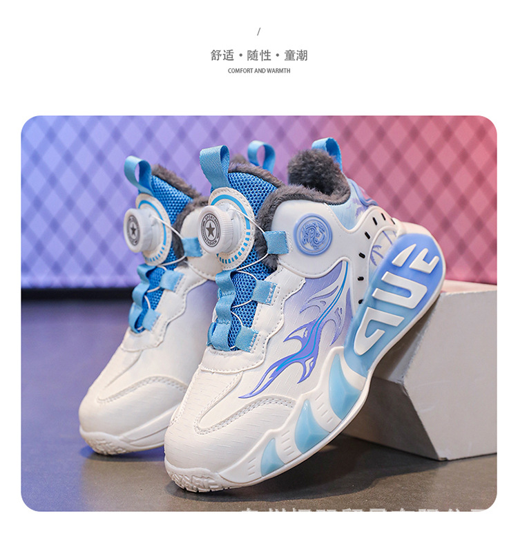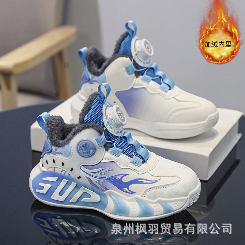 소년 농구 신발 2024 겨울 가죽 기모 따뜻한 큰면 신발 중대형 소년 버튼 스포츠 운동화스토어 가기
