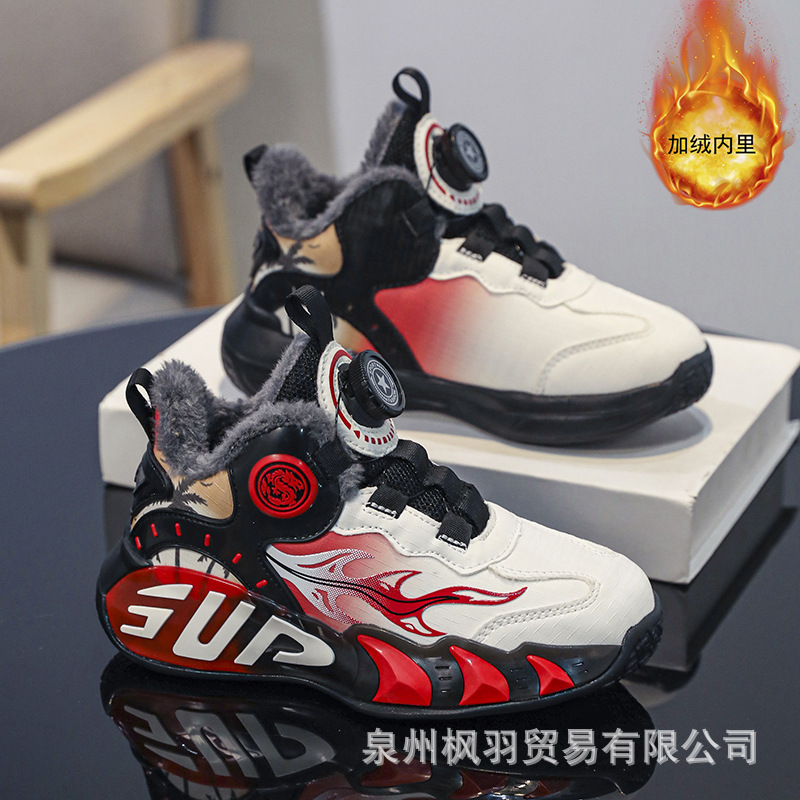 소년 농구 신발 2024 겨울 가죽 기모 따뜻한 큰면 신발 중대형 소년 버튼 스포츠 운동화