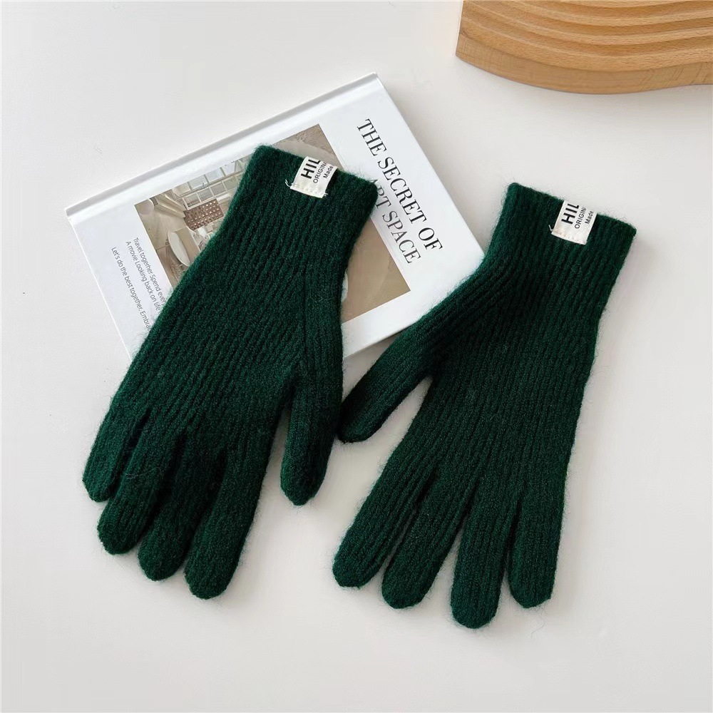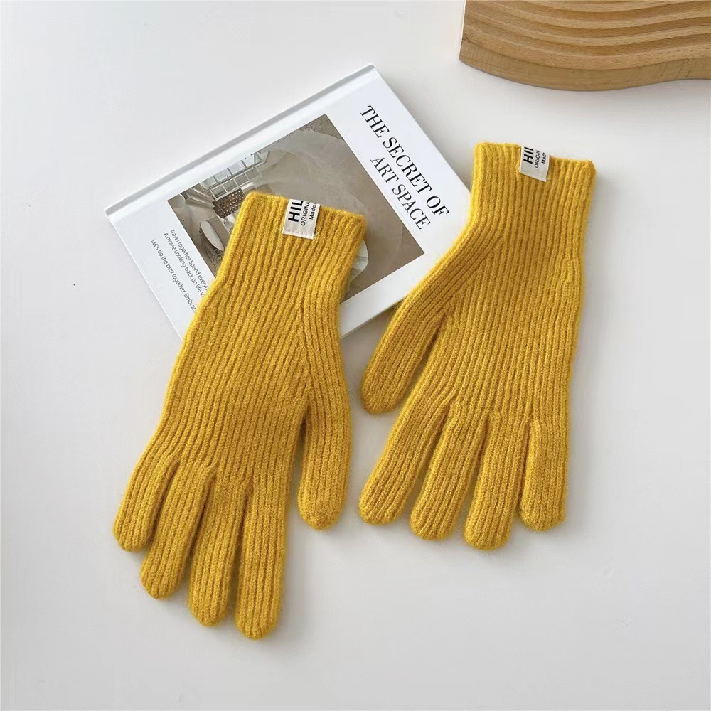 2024 겨울 사이클링 따뜻한 니트 장갑 손가락 터치 스크린 패션 우아한 한국 단색 학생 통근 올 매치