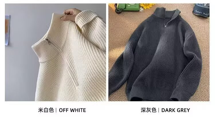 하프 지프 터틀넥 스웨터 남자 겨울 2024 새로운 솔리드 컬러 니트 스웨터 한국 스타일 게으른 스타일 올 매치 캐주얼 재킷스토어 가기