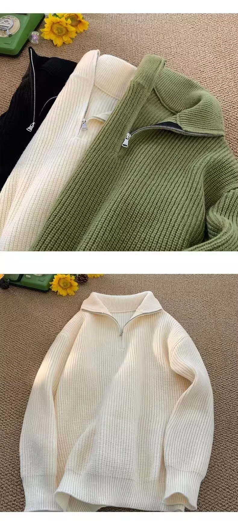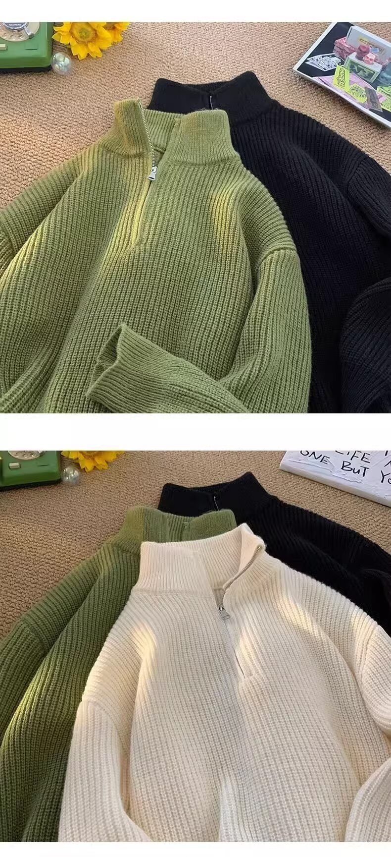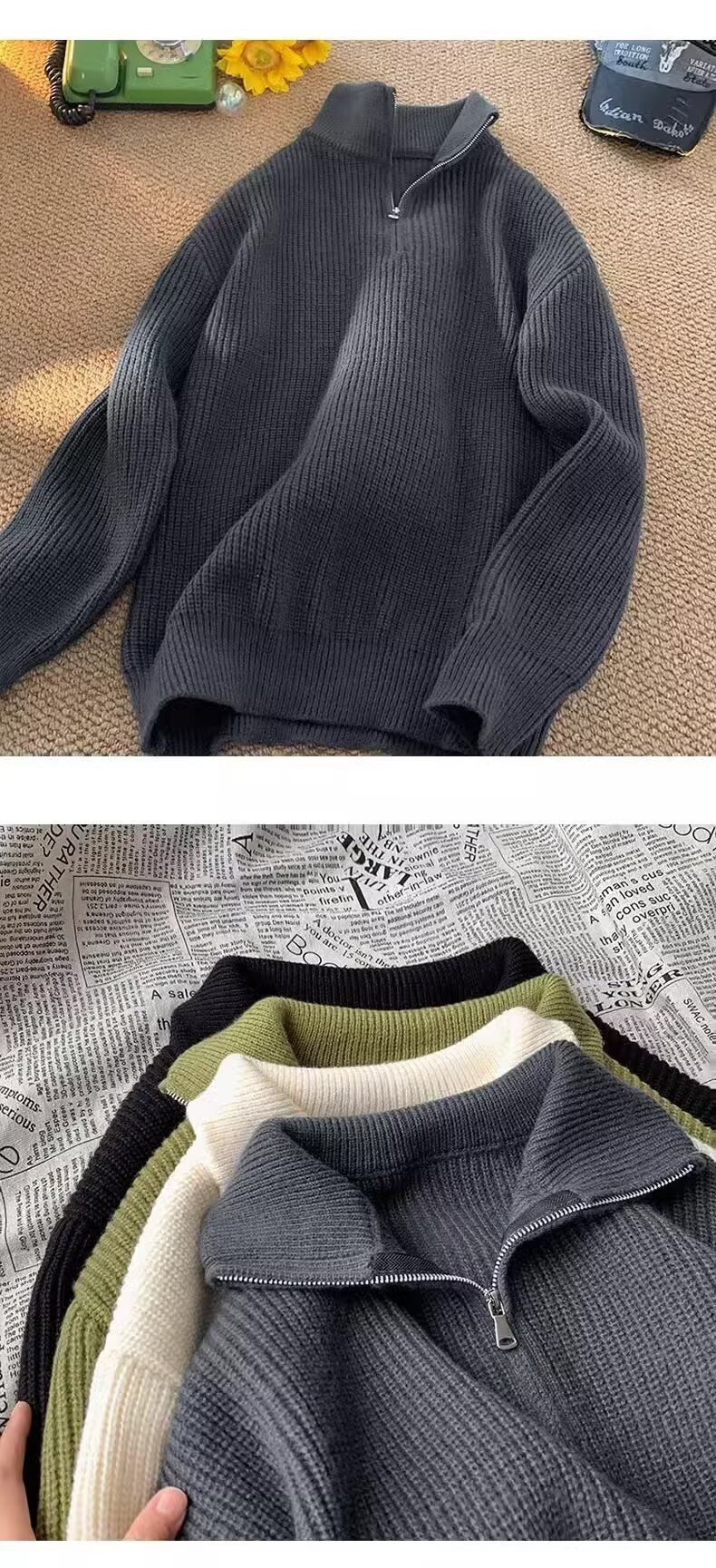 하프 지프 터틀넥 스웨터 남자 겨울 2024 새로운 솔리드 컬러 니트 스웨터 한국 스타일 게으른 스타일 올 매치 캐주얼 재킷