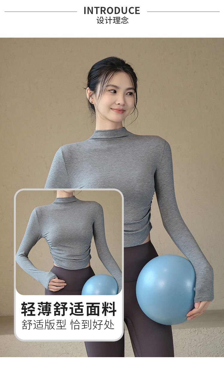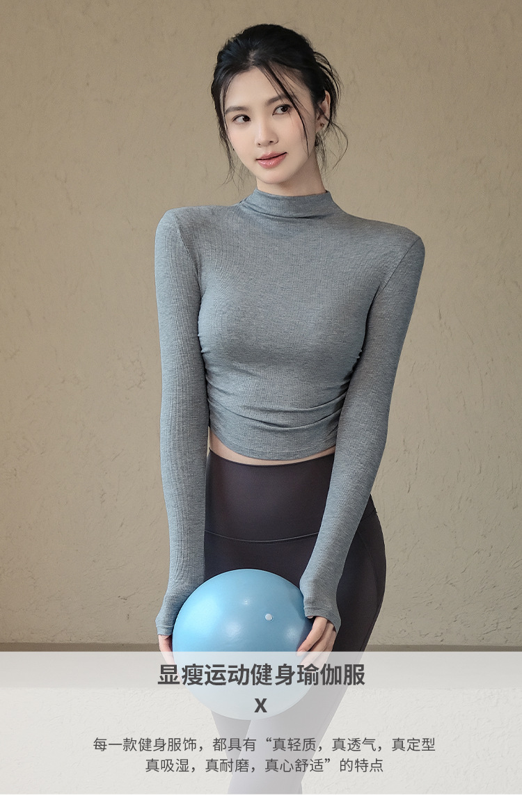 요가 의류 여성 가을 및 겨울 스포츠 탑 슬림 핏 플리츠 슬림 핏 긴슬리브 베이스 셔츠 필라테스 트레이닝 피트니스 의류스토어 가기