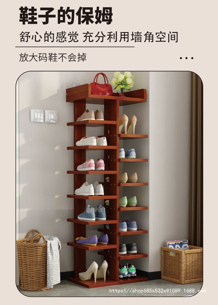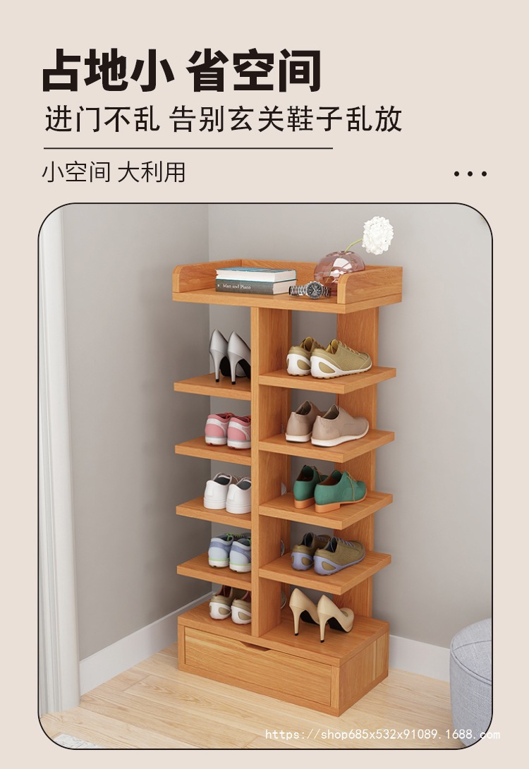 단단한 나무 신발 선반 작은 좁은 문 길 가정용 다층 도매 2024 간단한 가정용 신발 랙 발코니 복도 외부 신발 캐비닛스토어 가기