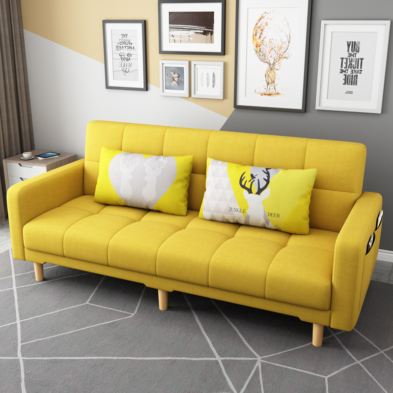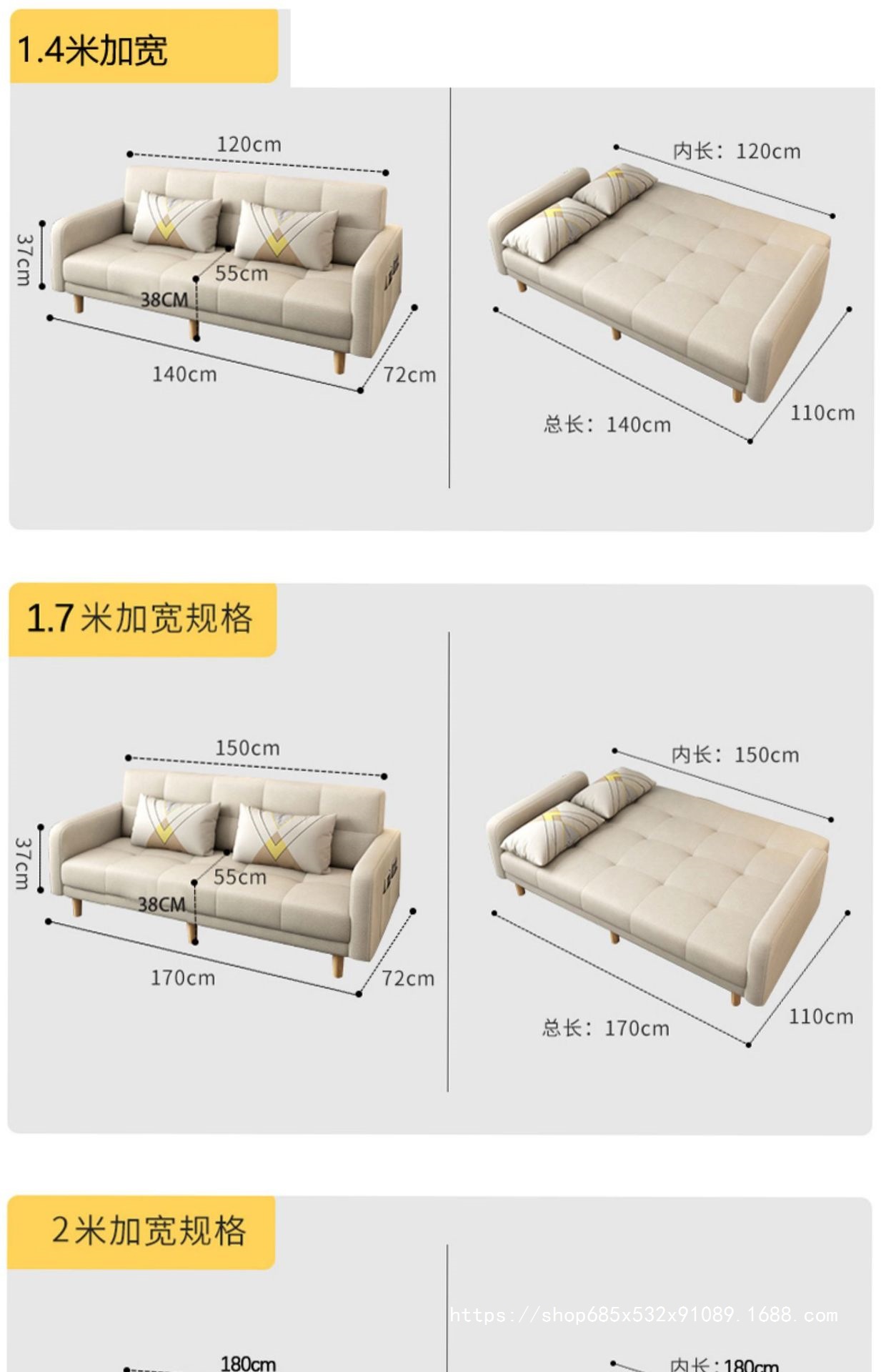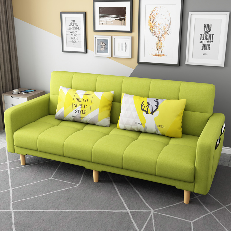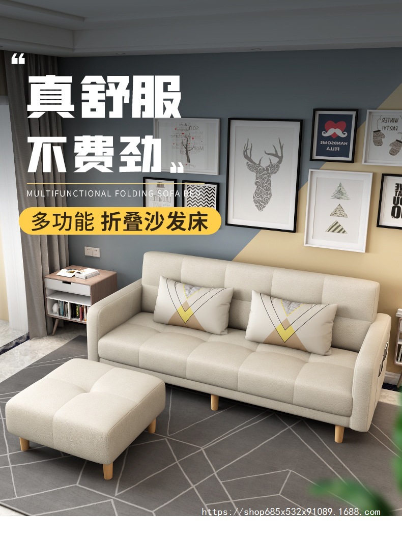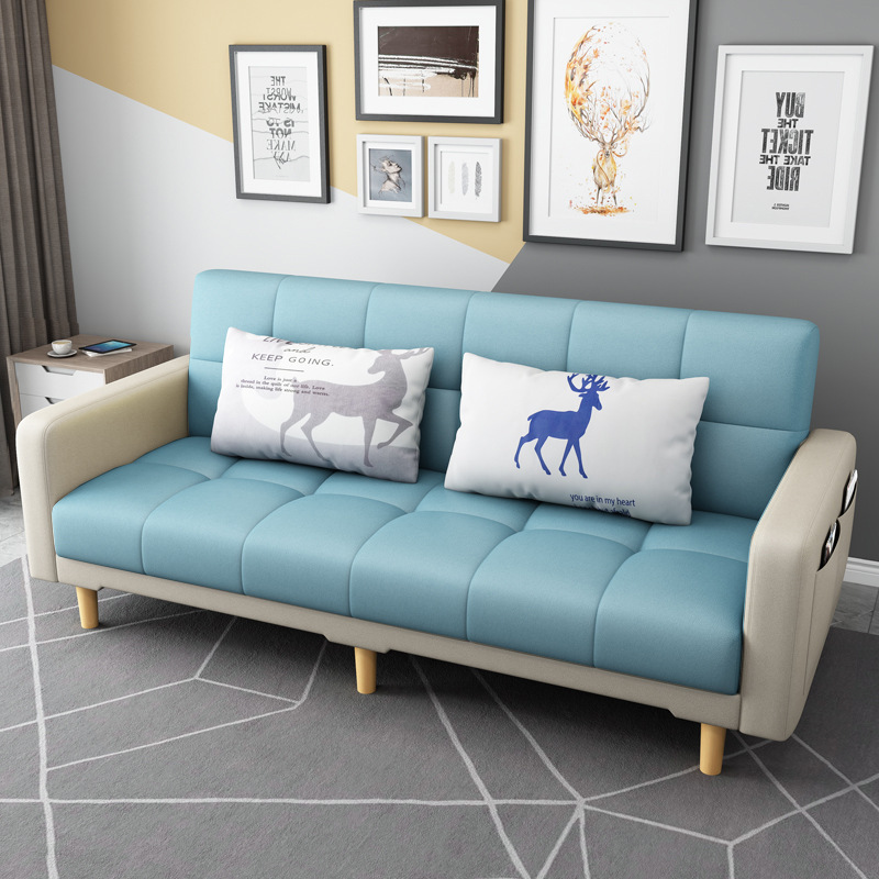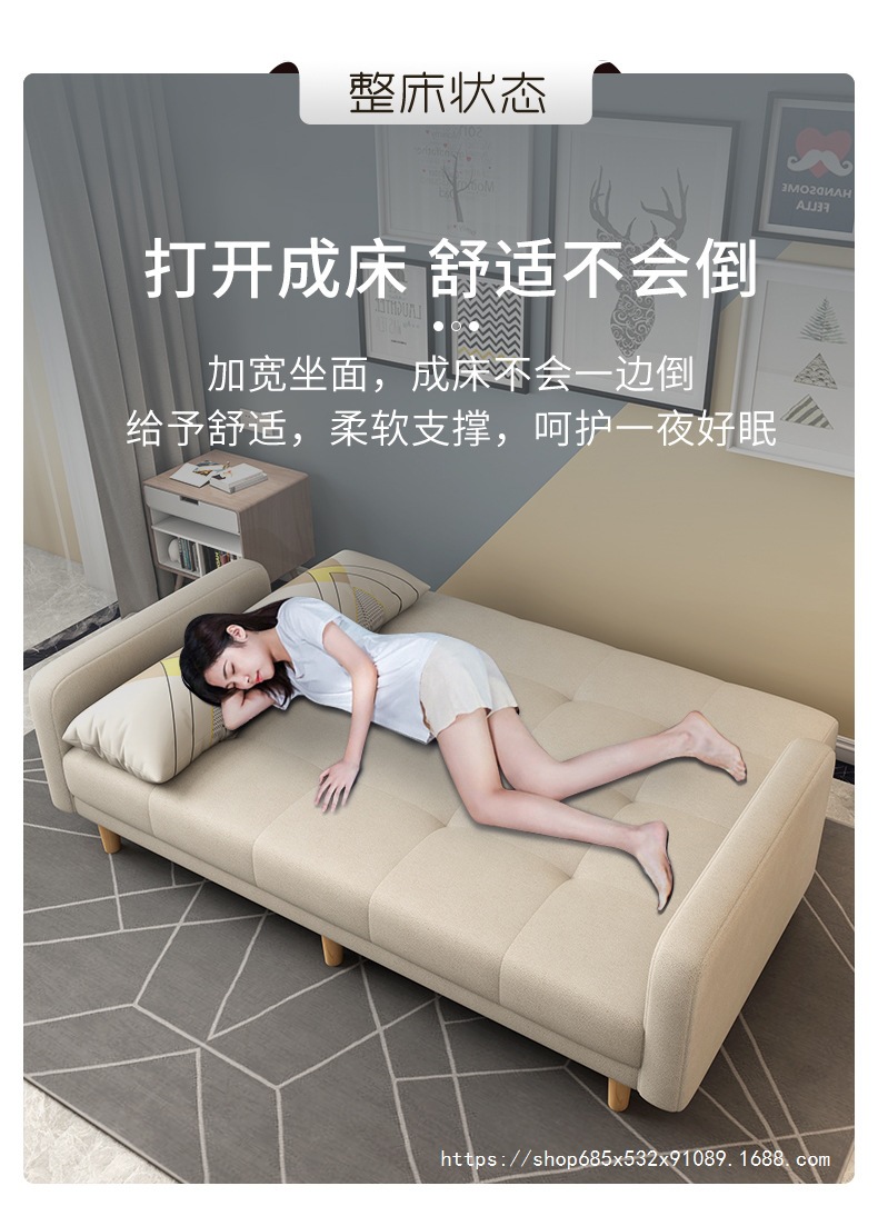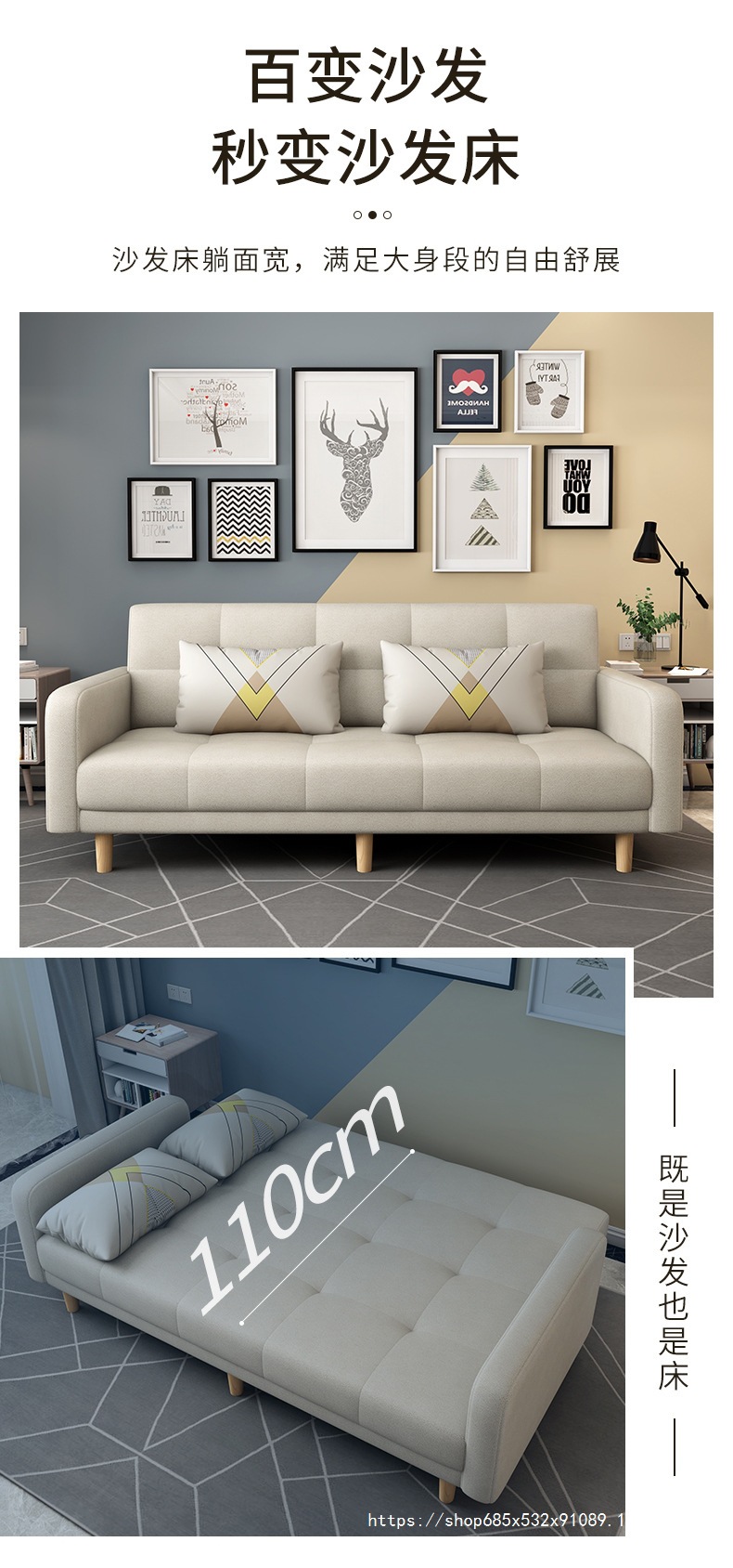새로운 작은 소파 작은 아파트 기술 천 소파 침대 이중 사용 임대 집 농촌 3 미터 긴 나무