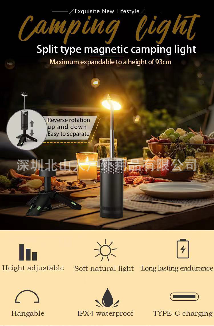 2025 국경 야외 텔레스코픽 캠핑 라이트 슈퍼 밝은 다기능 브래킷 자동 수리 작업 조명 캠핑 라이트