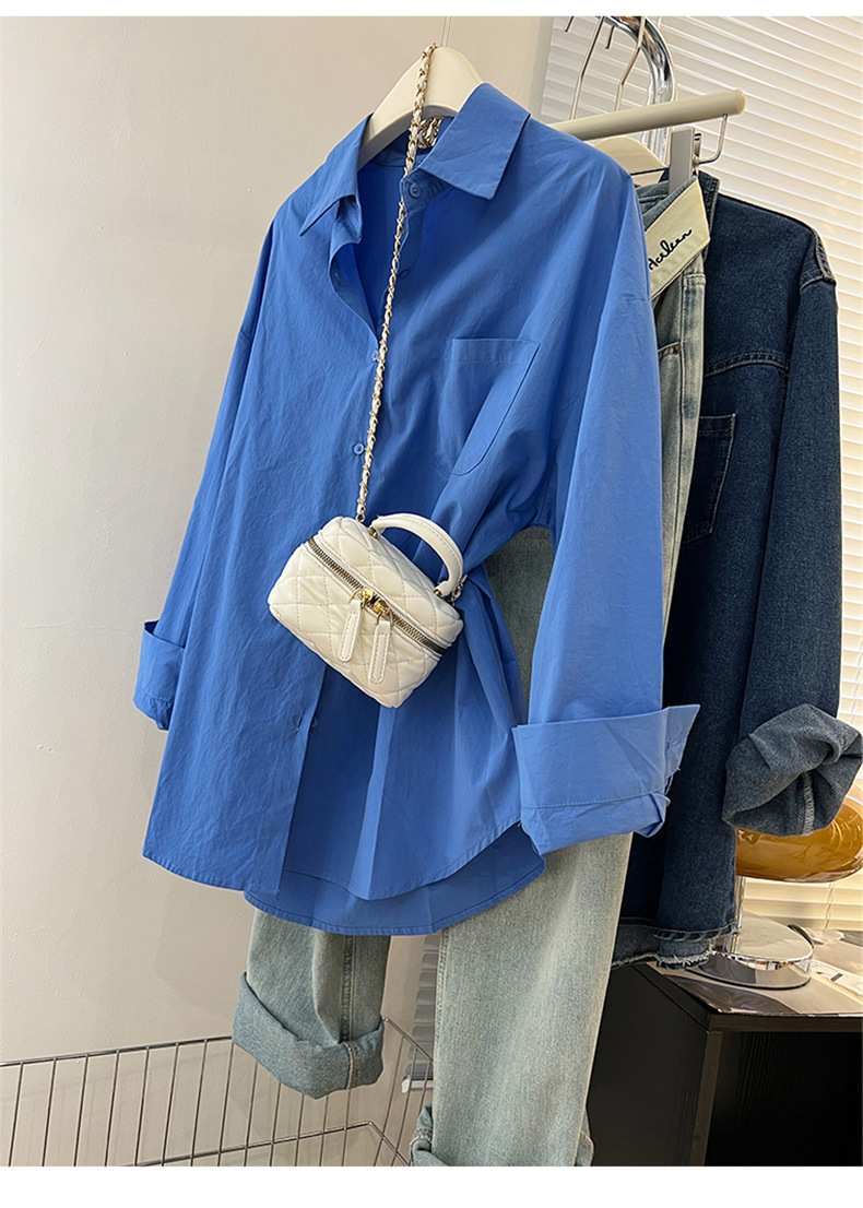 클라인 블루 셔츠 여성 2024 이른 봄 가을 세련된 프랑스 최고 여름 코트 얇은 선 스크린 셔츠스토어 가기