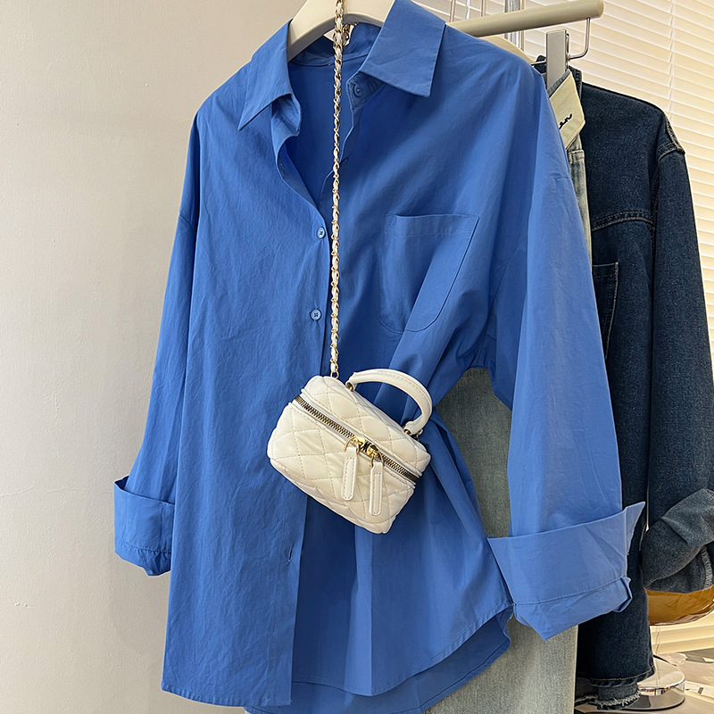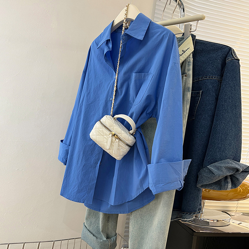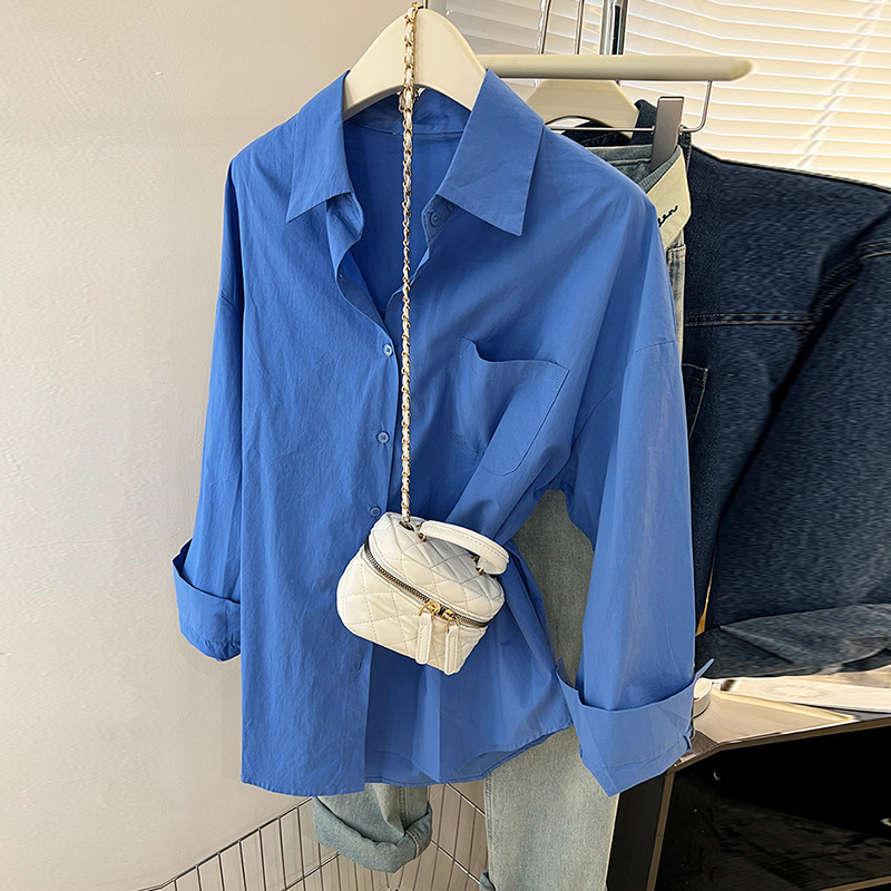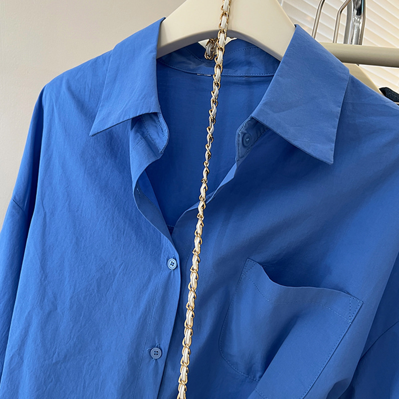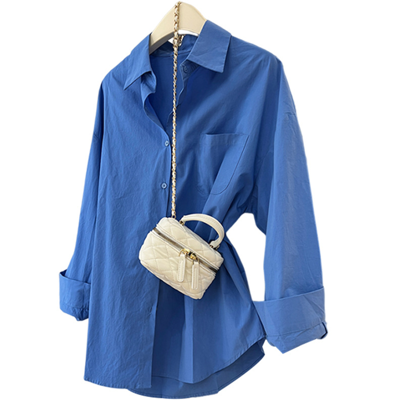 클라인 블루 셔츠 여성 2024 이른 봄 가을 세련된 프랑스 최고 여름 코트 얇은 선 스크린 셔츠