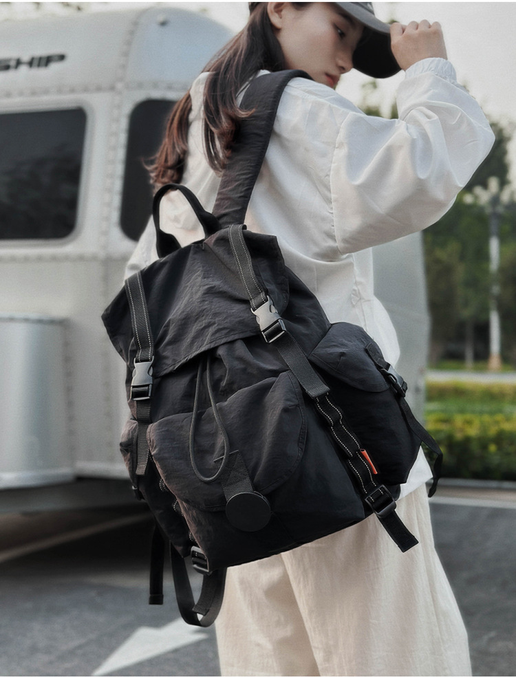 드로우 스트링 플립 배낭 야외 대용량 경량 배낭 여성 여행 등산 컴퓨터 배낭 남성 학생 스쿨 백