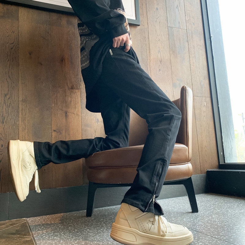 흰색 슬림 핏 청바지 남성용 가을 미국식 VIBE 스타일 바지 더피 핸섬 지퍼 분할 입술 마이크로 스트레이트 다리 바지스토어 가기