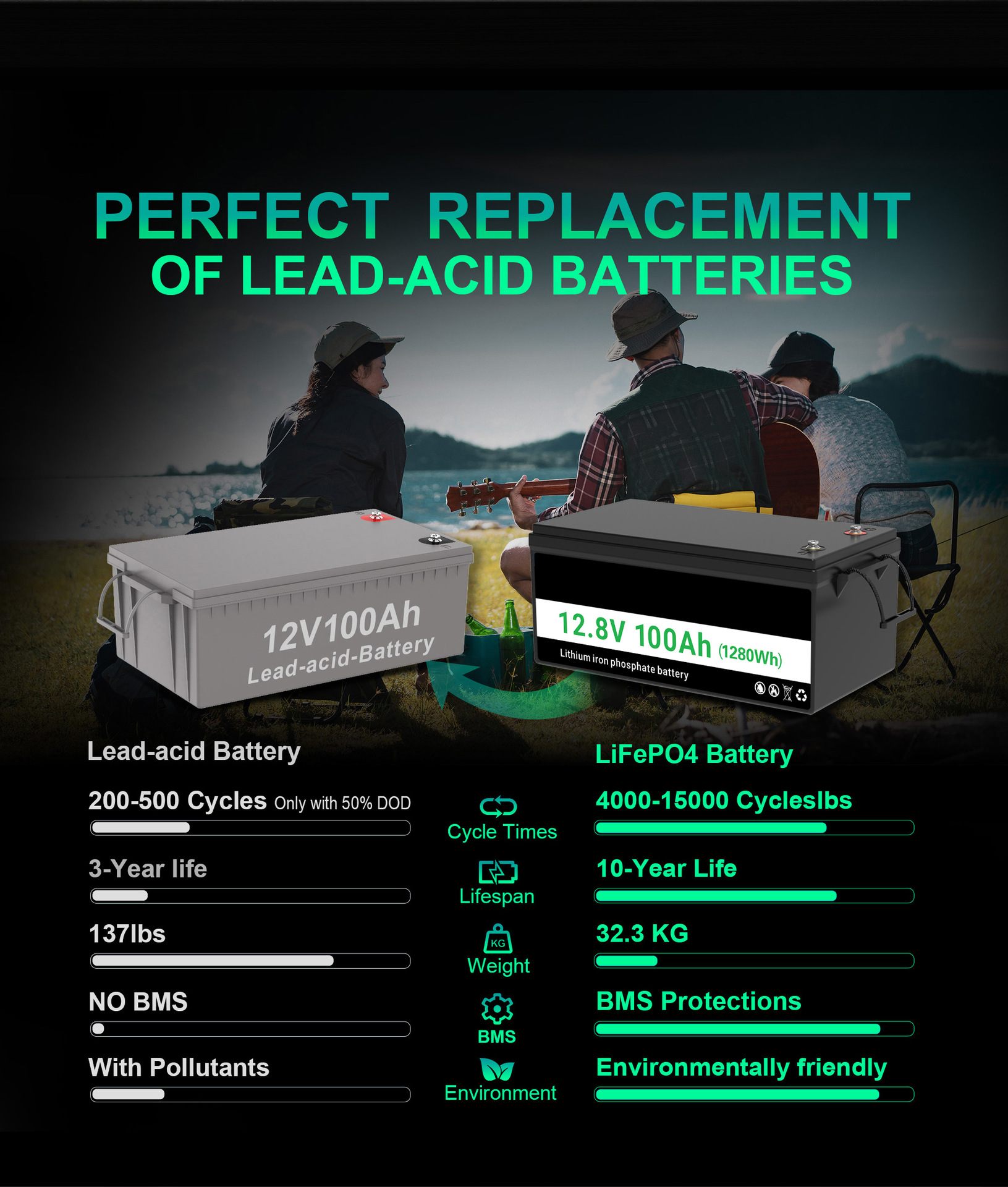 • 납에서 리튬으로 12.8V/100AH로 변경