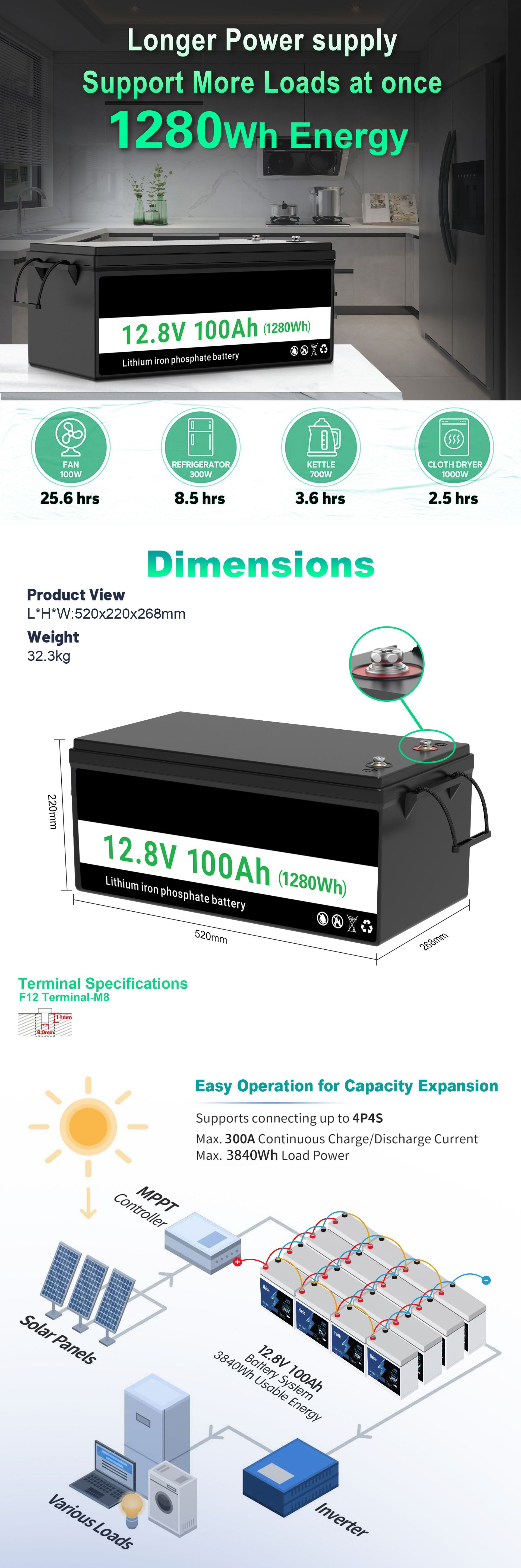 • 납에서 리튬으로 12.8V/120AH로 변경