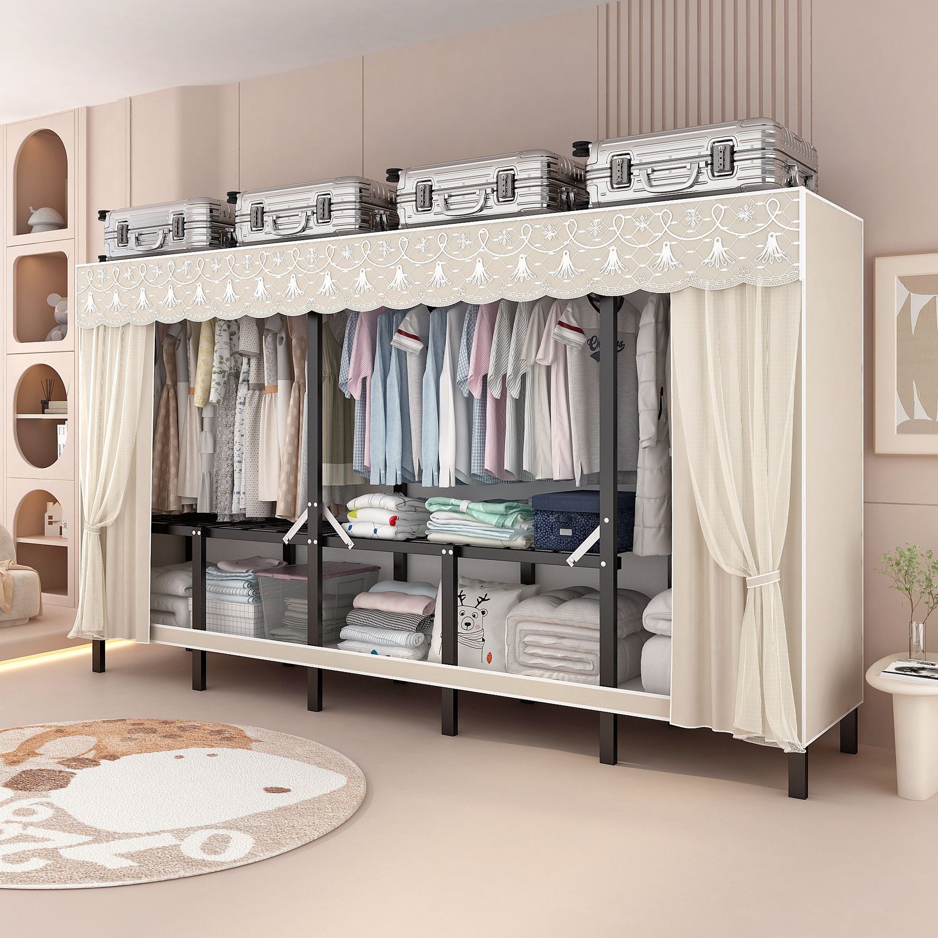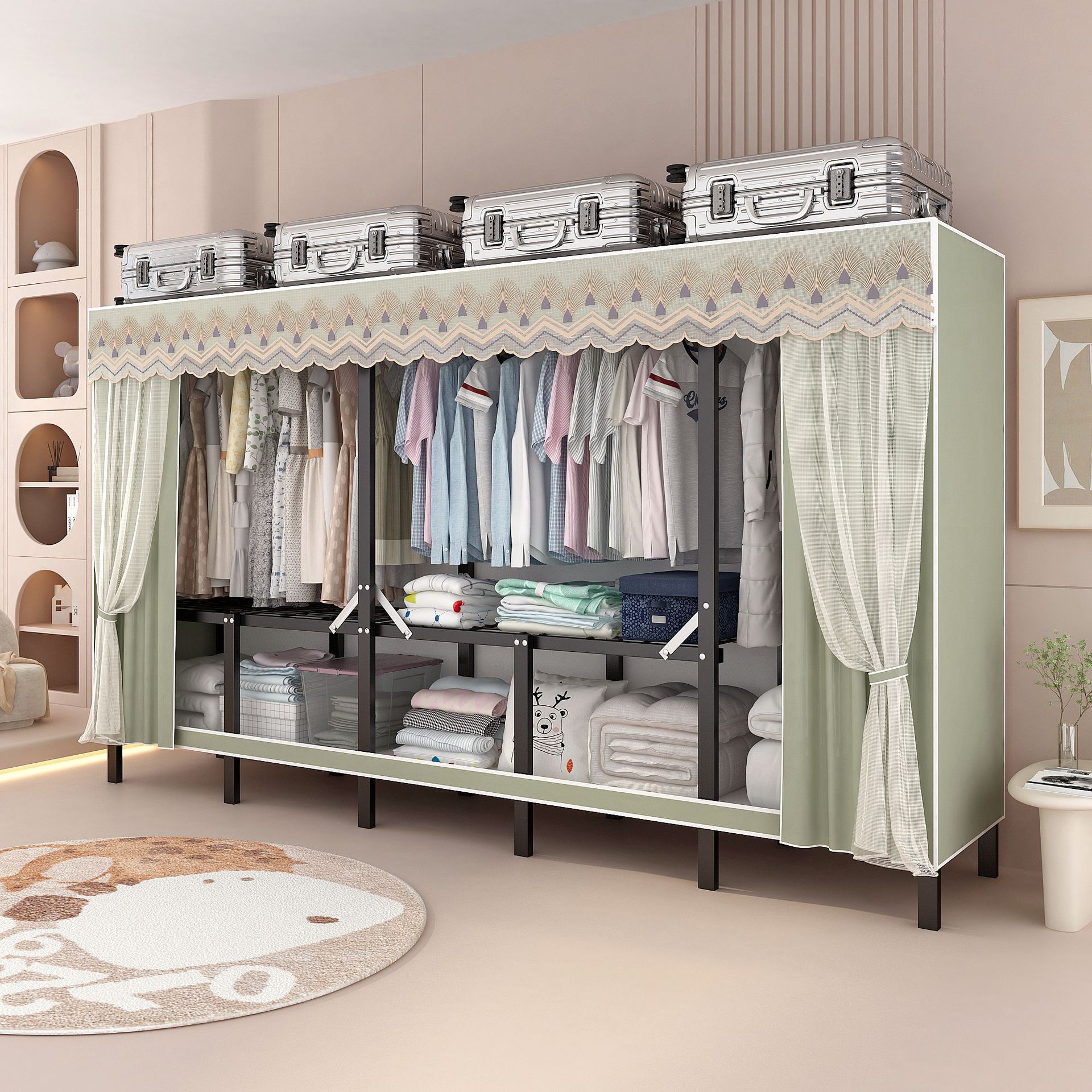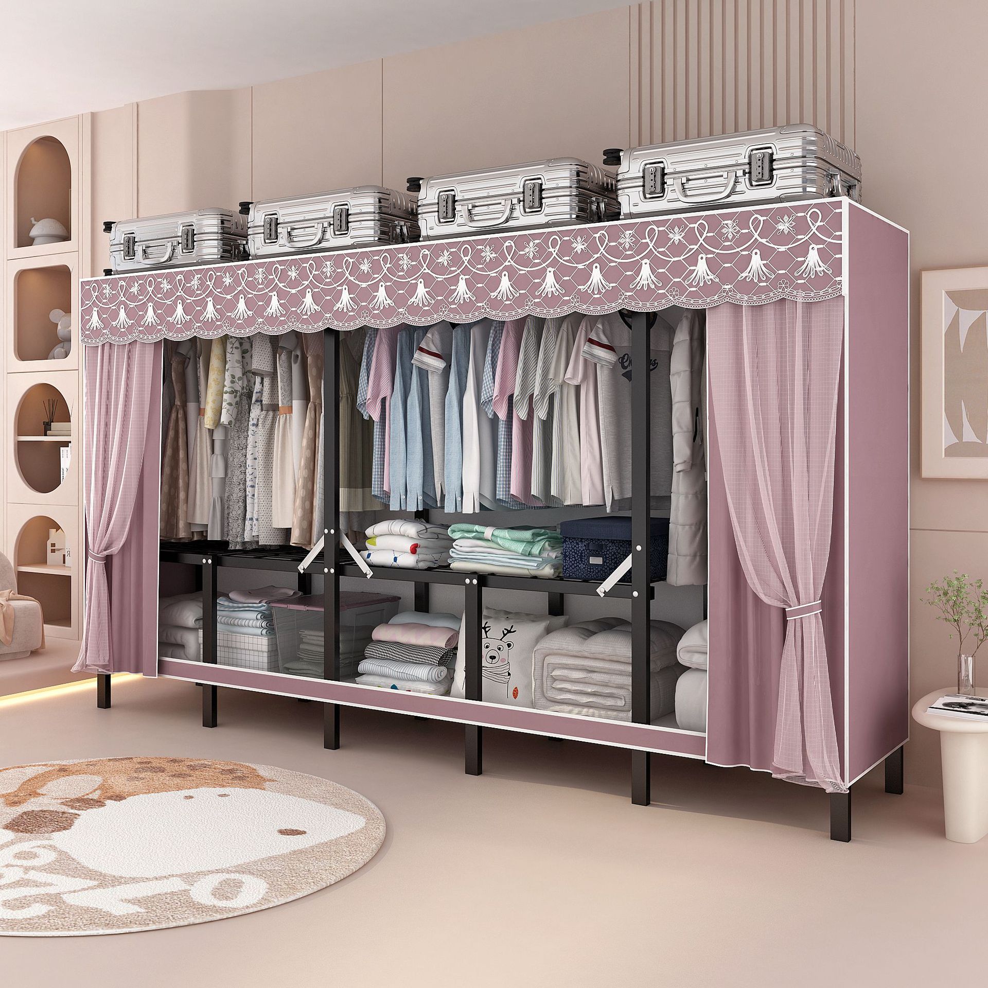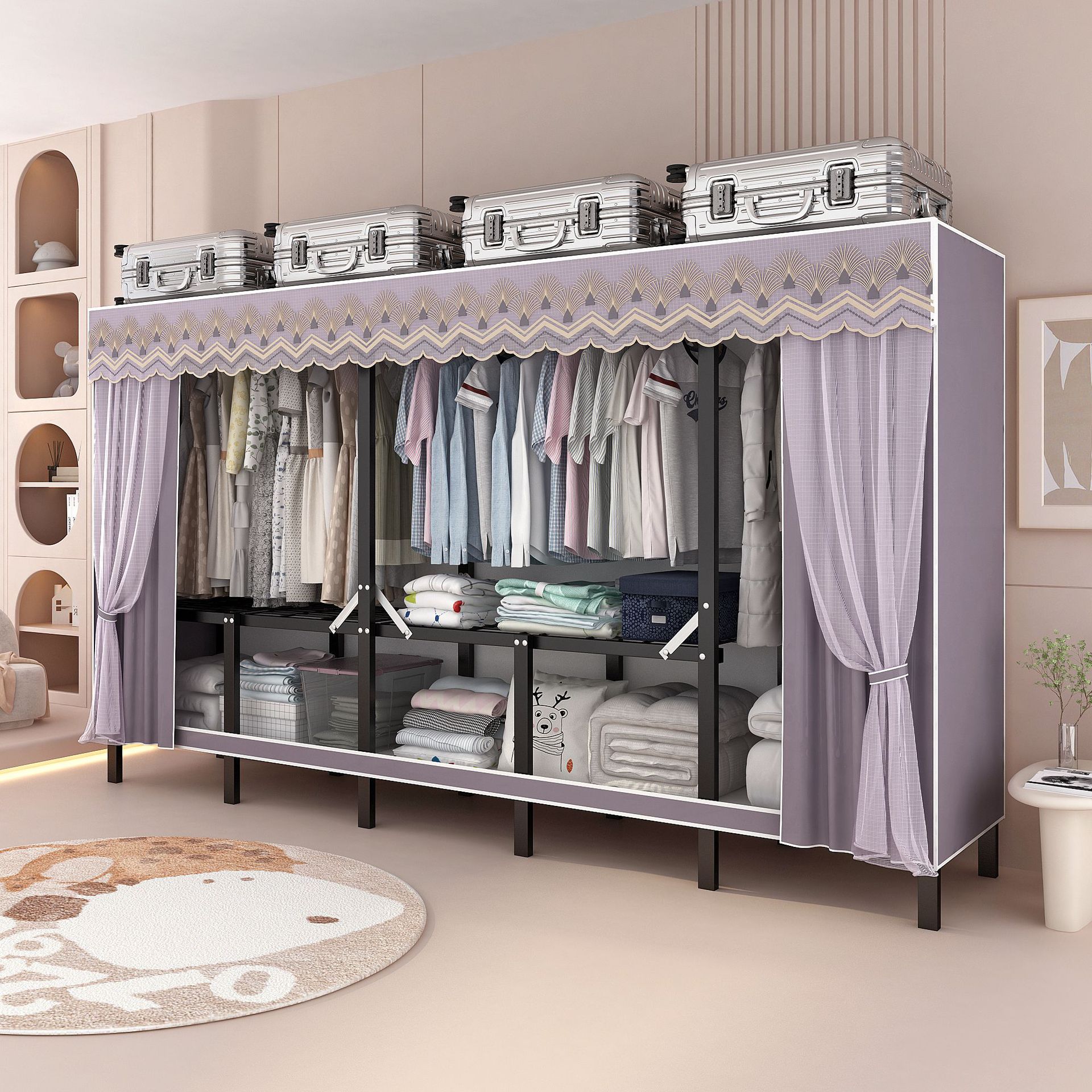 간단한 옷장 설치-무료 접이식 천 옷장 홈 침실 임대 룸 홈 현대 보관 옷장