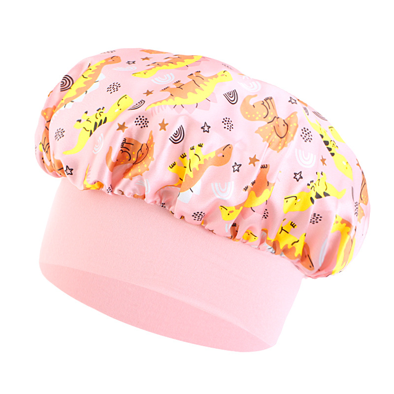 欧美流行儿童卡通色丁睡帽恐龙印花宝宝头巾帽 JDKB-21A-5