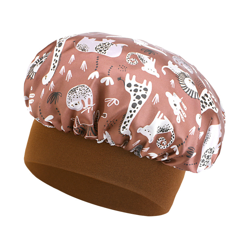 亚马逊儿童弹力印花绑带圆帽 男女宝宝可爱浴帽头巾帽JDKB-21D