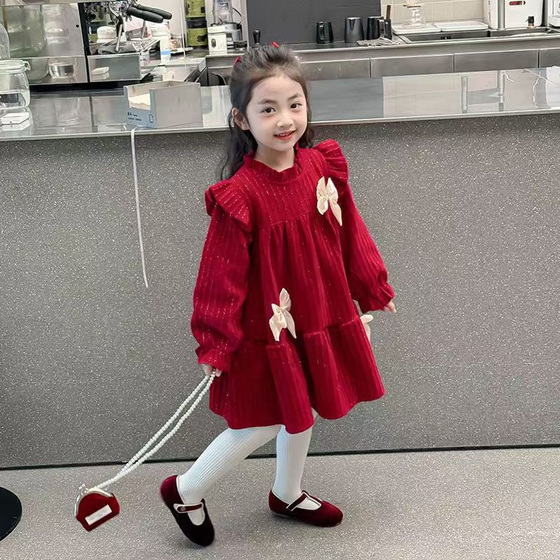 한국 스타일 소녀의 기모 가을 겨울 새로운 붉은 따뜻한 두꺼운 벨벳 원피스 아기 소녀의 생일 원피스 원피스스토어 가기