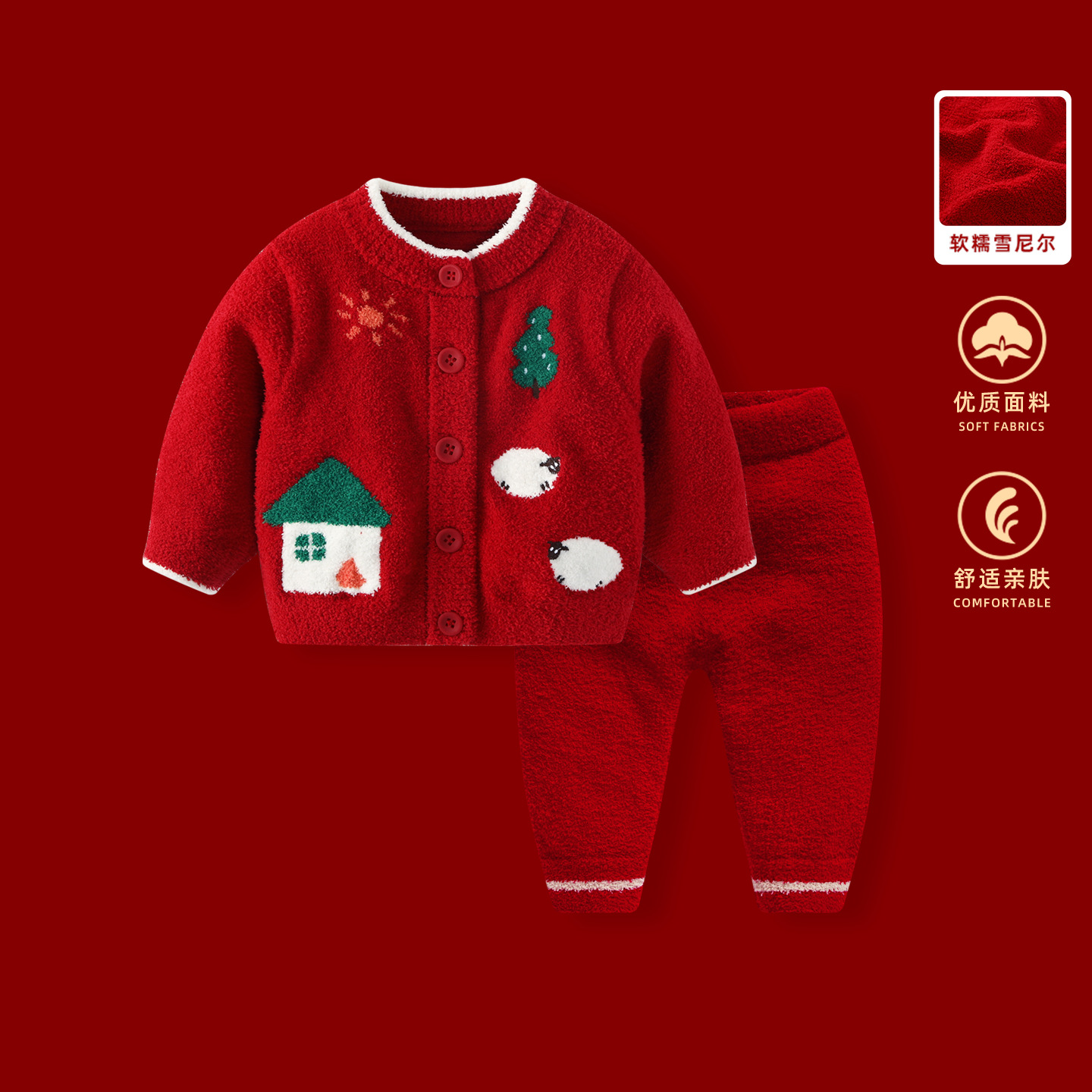 [반 벨벳] 아기 세트 가을과 겨울 집 옷 파자마 아기 옷 아이들의 두꺼운 남자 스웨터 겨울스토어 가기