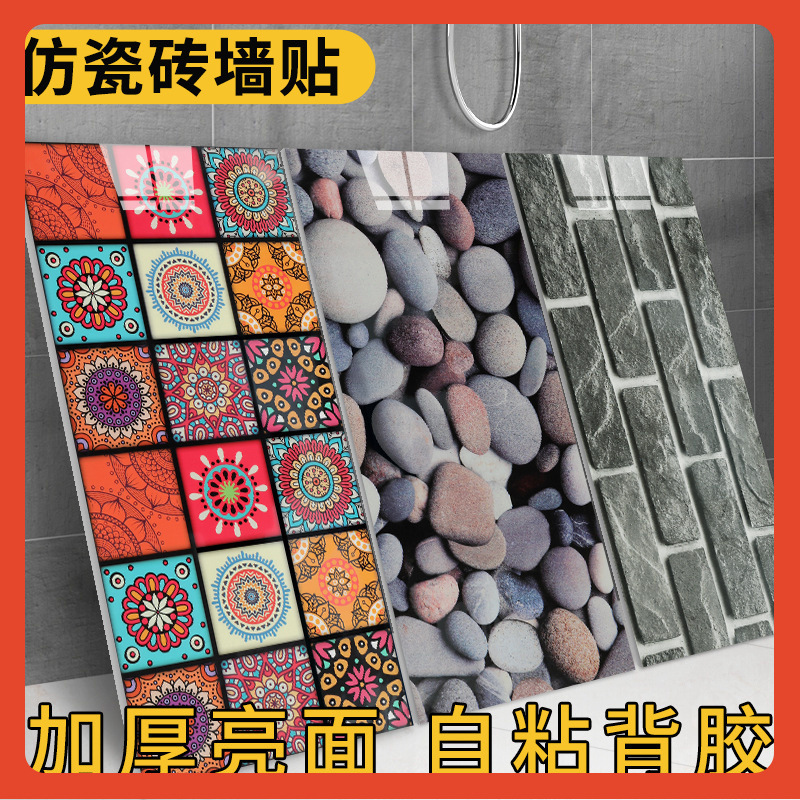 ♂ 모조 타일 벽 스티커 주방 방수 벽지 자체 접착 방수 및 방습 욕실 모조 대리석 자체 접착 벽 스티커