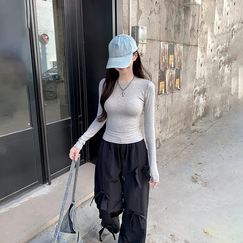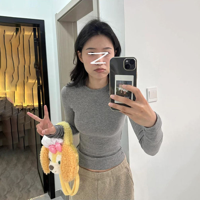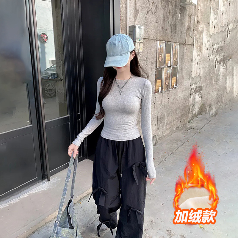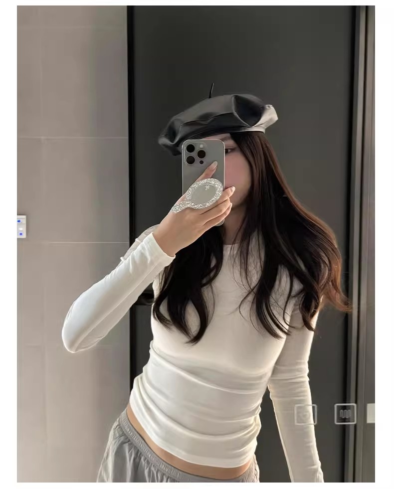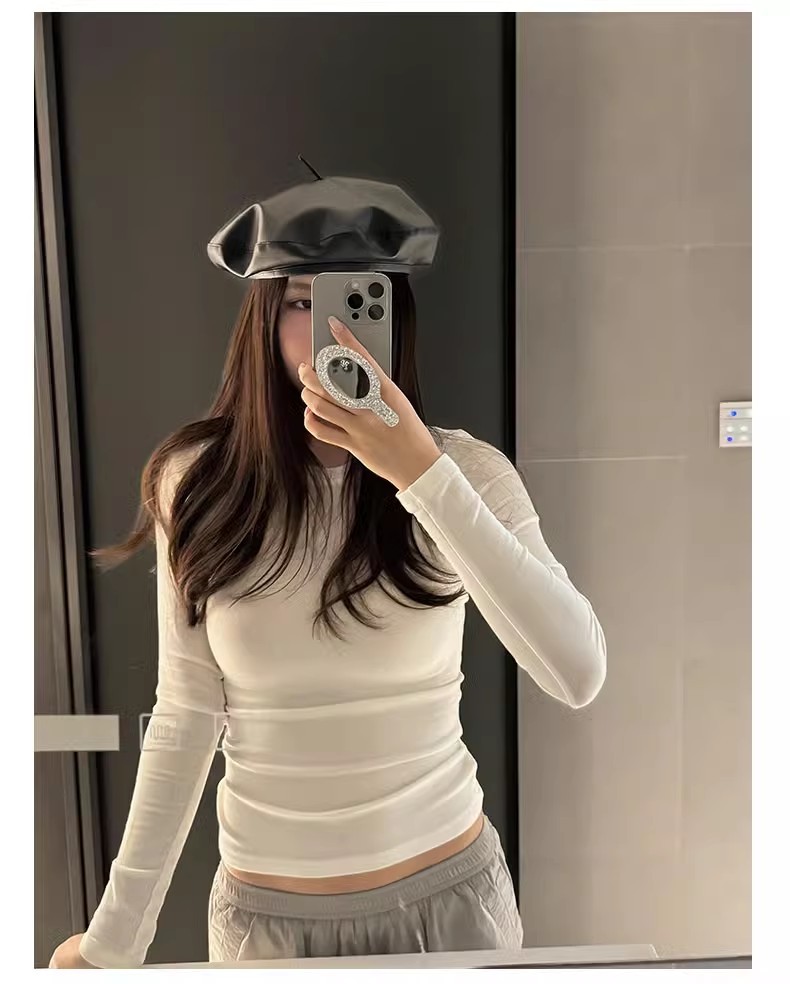 가을 겨울 여성용 라운드 넥 화이트 벨벳 슬림 긴팔 셔츠, 이너웨어 및 아우터웨어, 오른쪽 어깨 허리 2025 뉴 탑