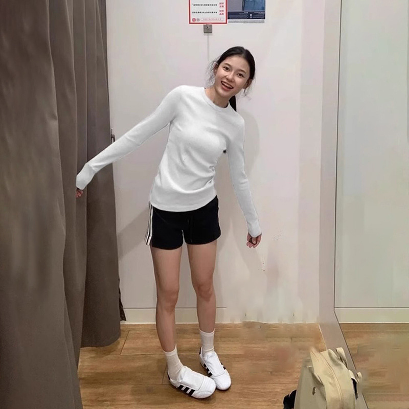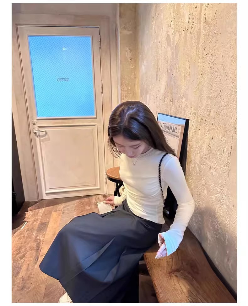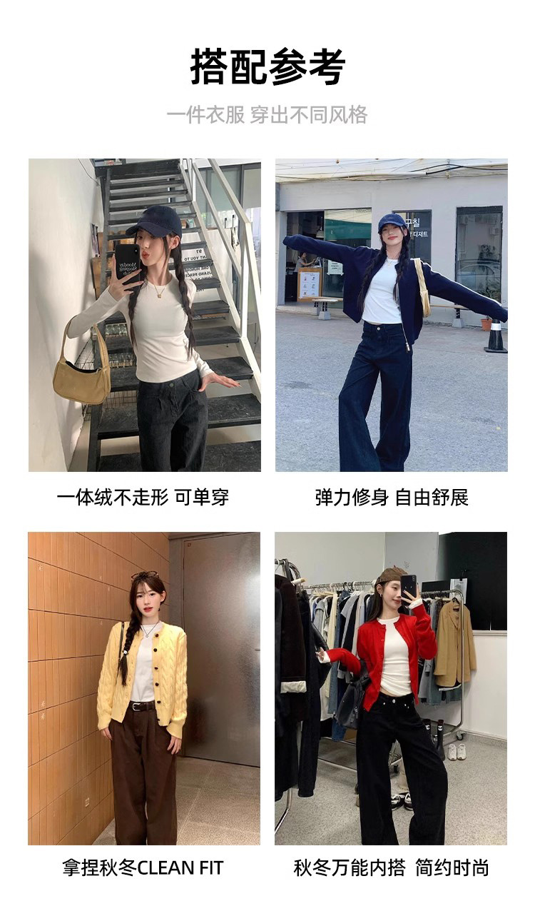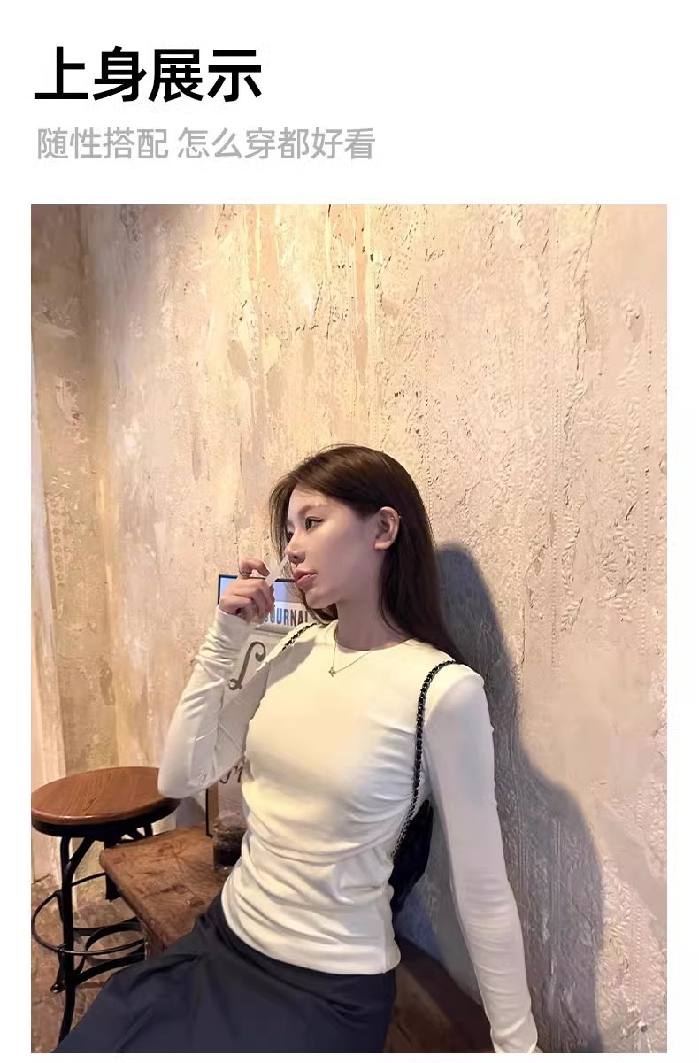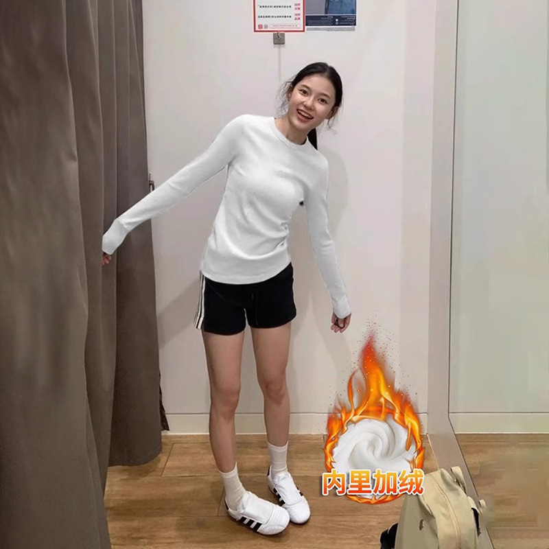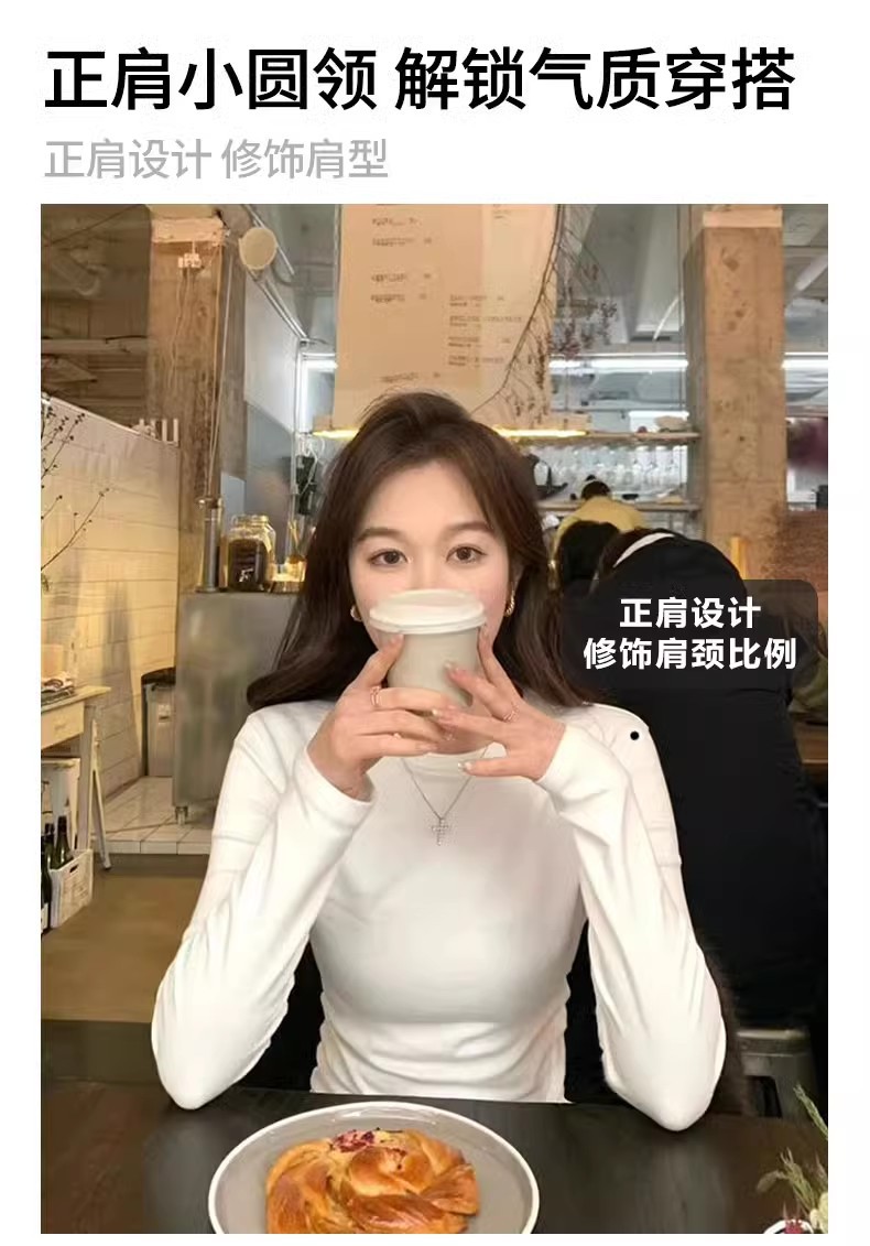 가을 겨울 여성용 라운드 넥 화이트 벨벳 슬림 긴팔 셔츠, 이너웨어 및 아우터웨어, 오른쪽 어깨 허리 2025 뉴 탑스토어 가기