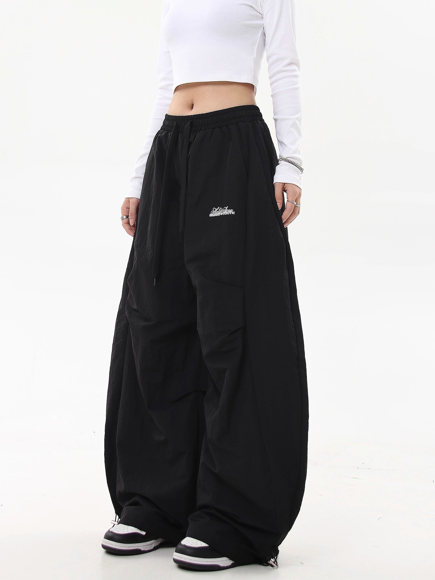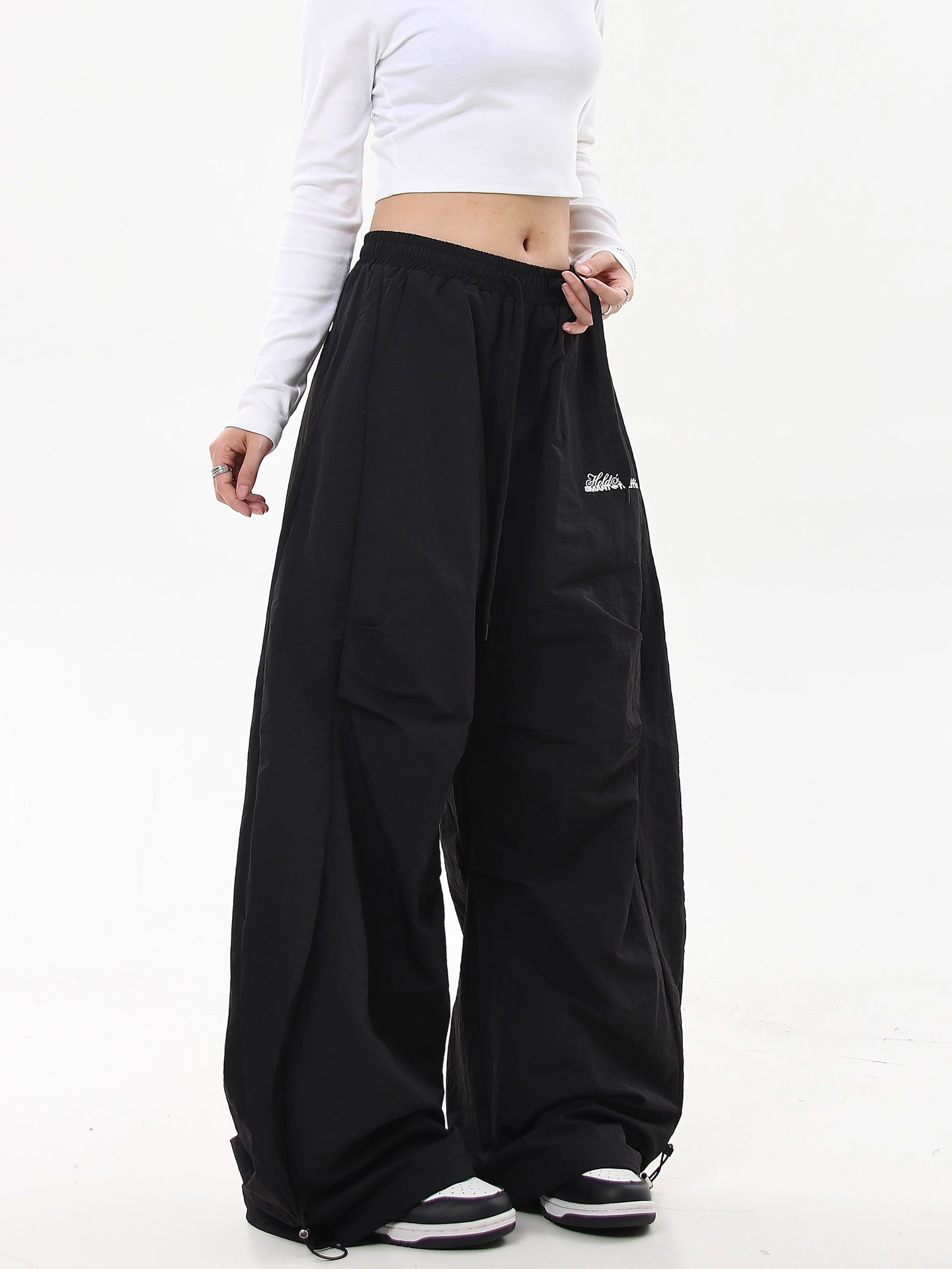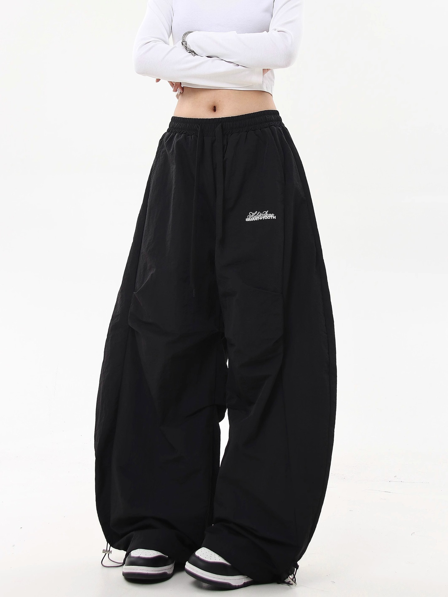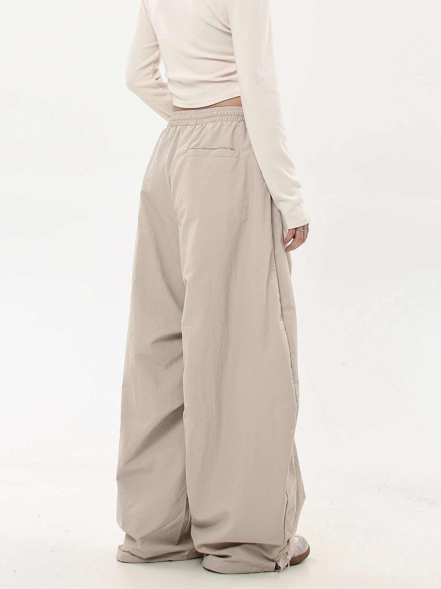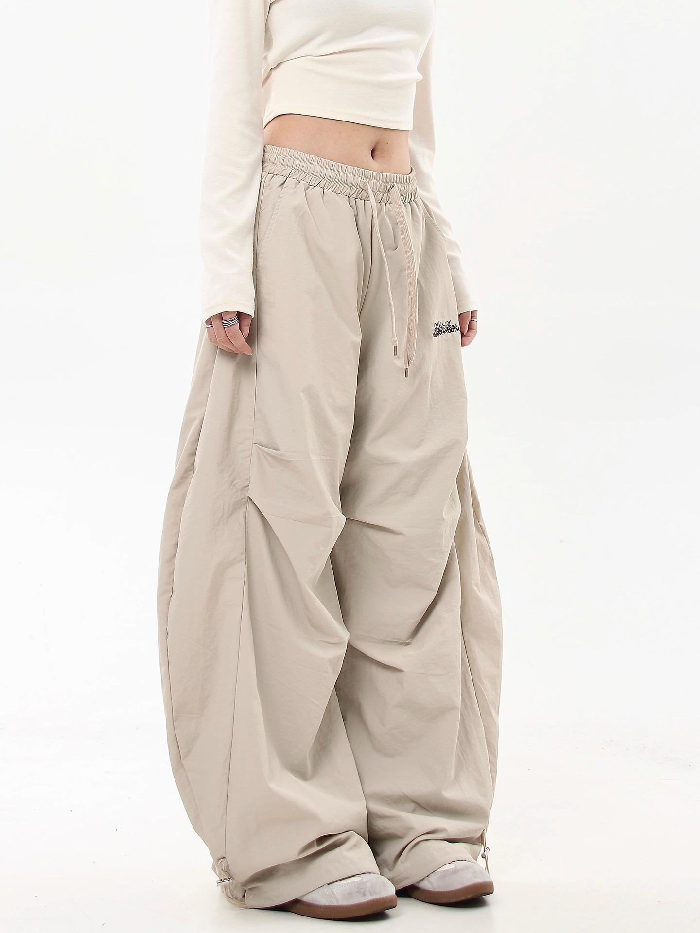 고급 주름 디자인 감각 낙하산 작업 캐주얼 바지 여성 봄과 가을 새로운 미국 스타일 복고풍 넓은 다리 바나나 만도 바지스토어 가기