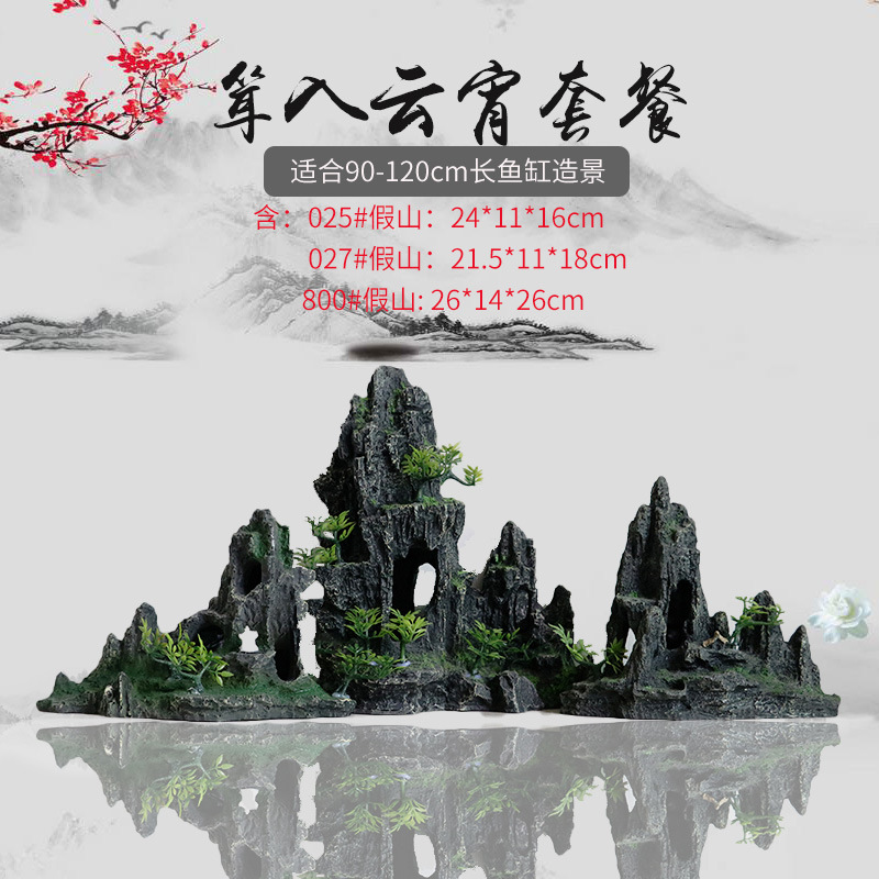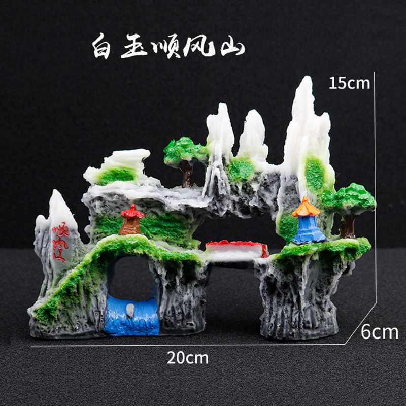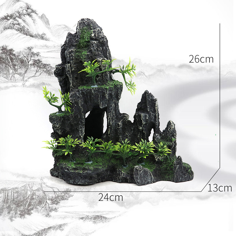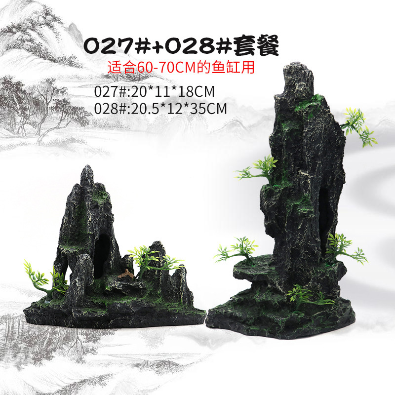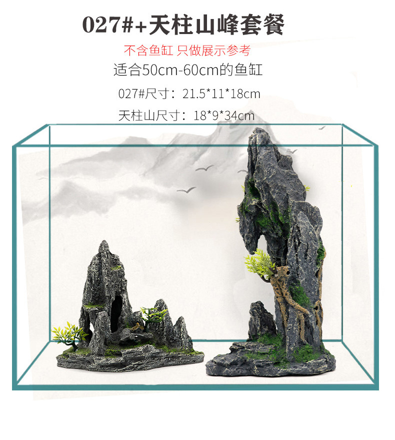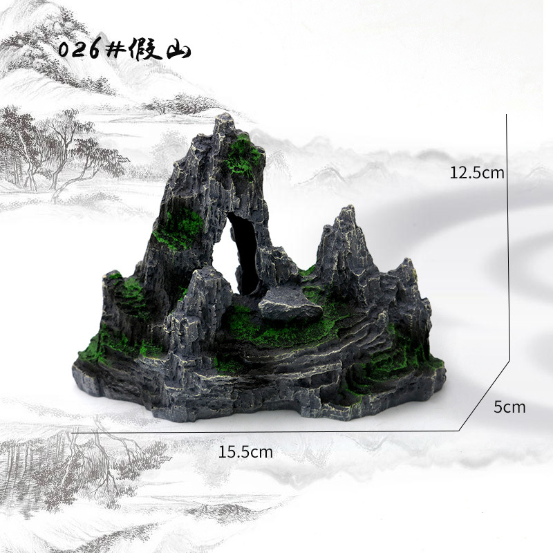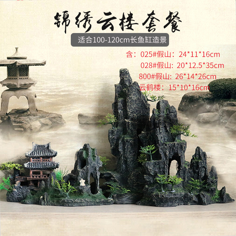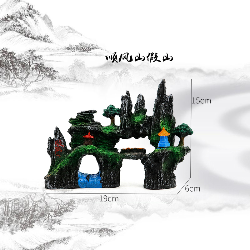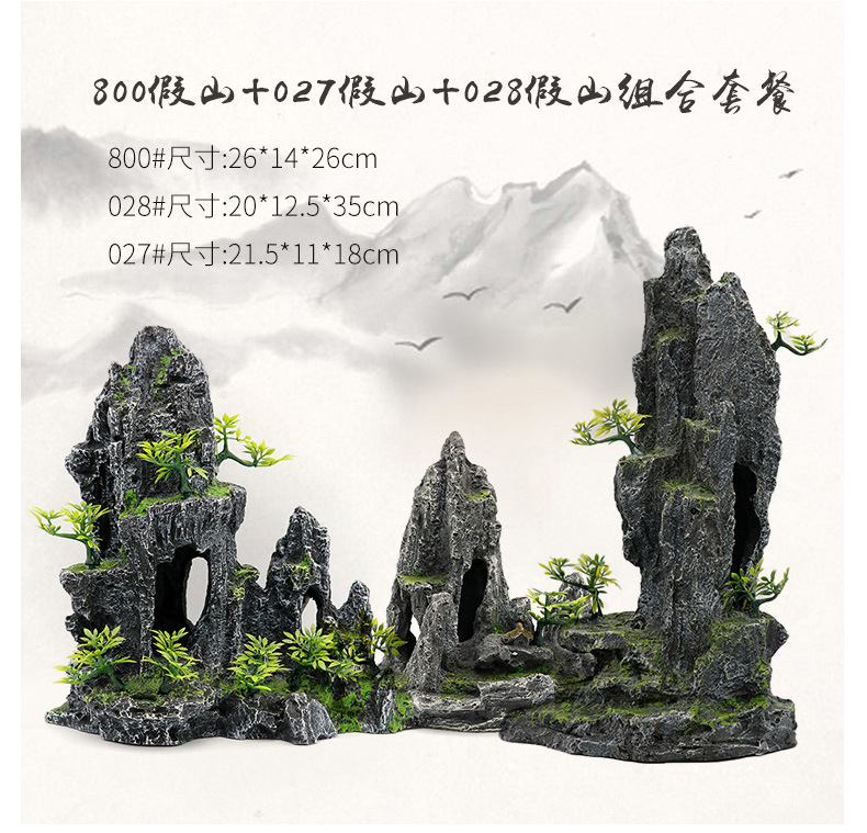 厂家直销 鱼缸造景假山 树脂工艺品人工假山水族箱装饰摆件中国风