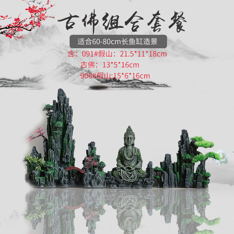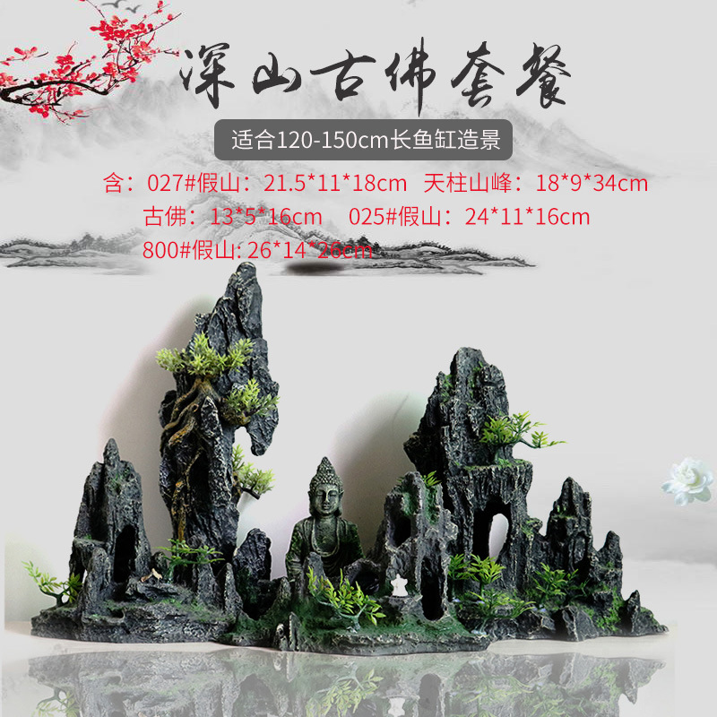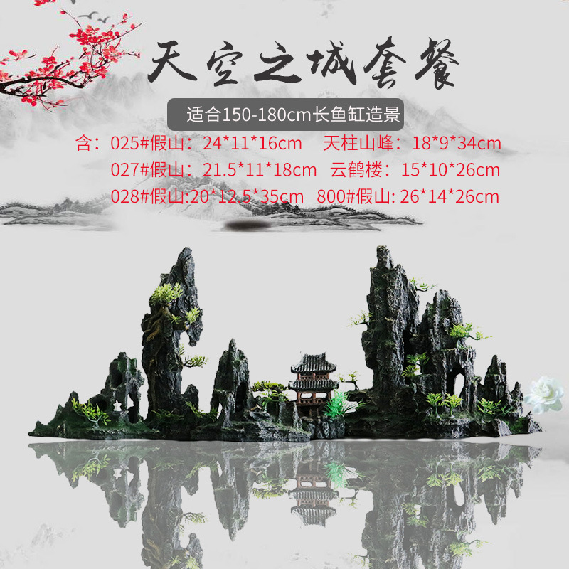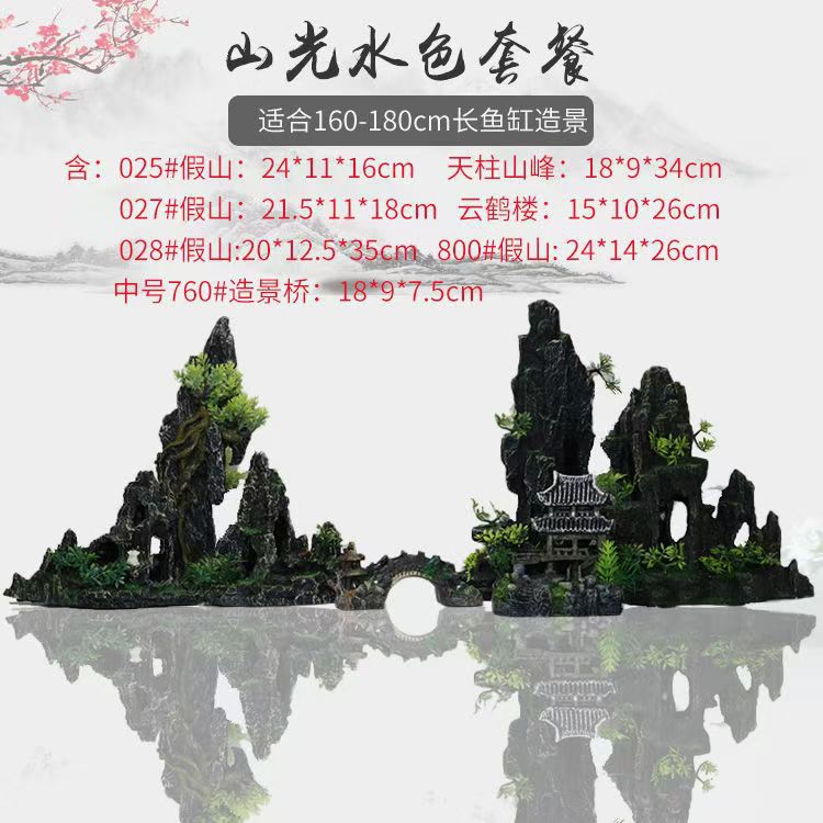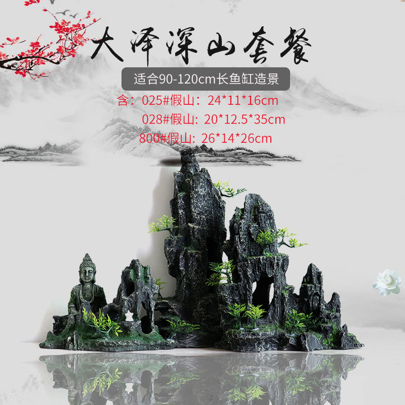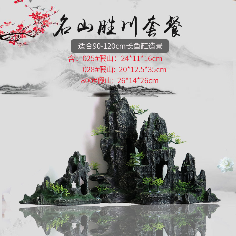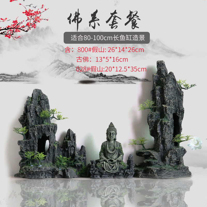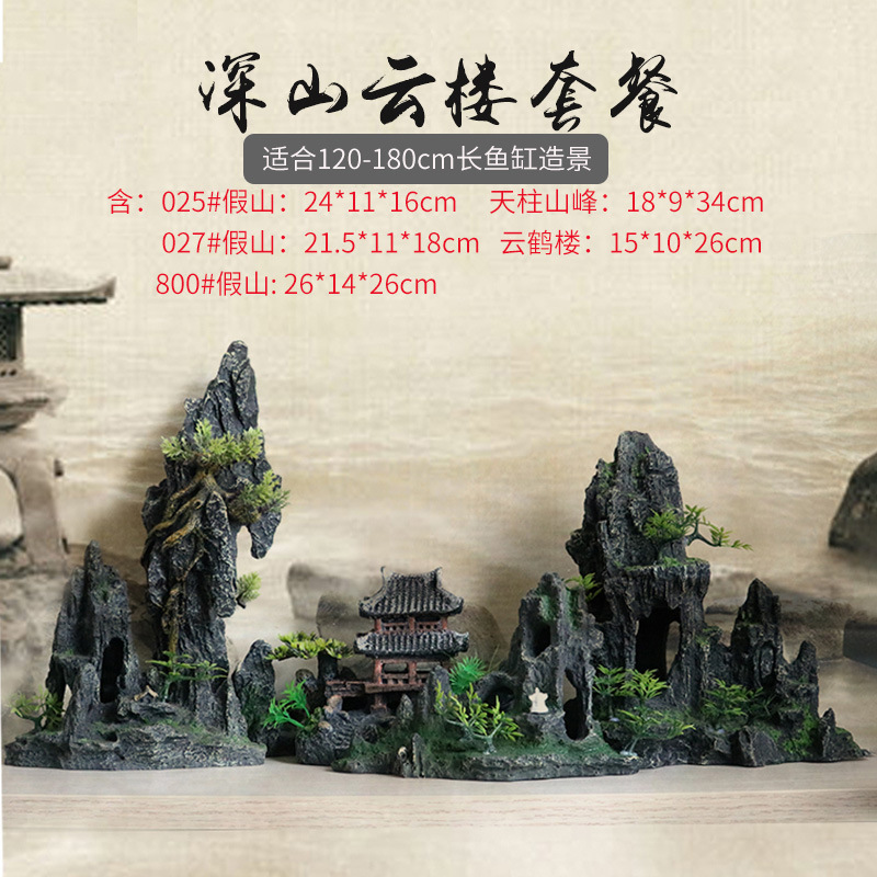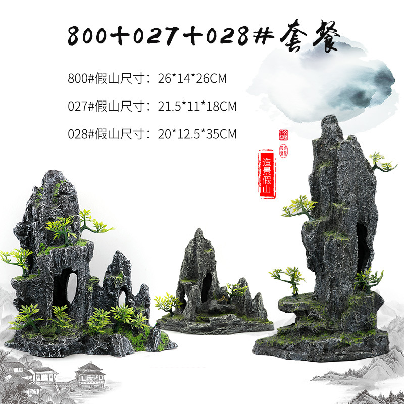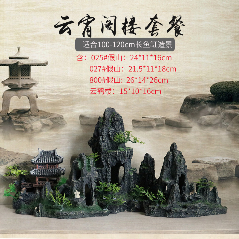 厂家直销 鱼缸造景假山 树脂工艺品人工假山水族箱装饰摆件中国风