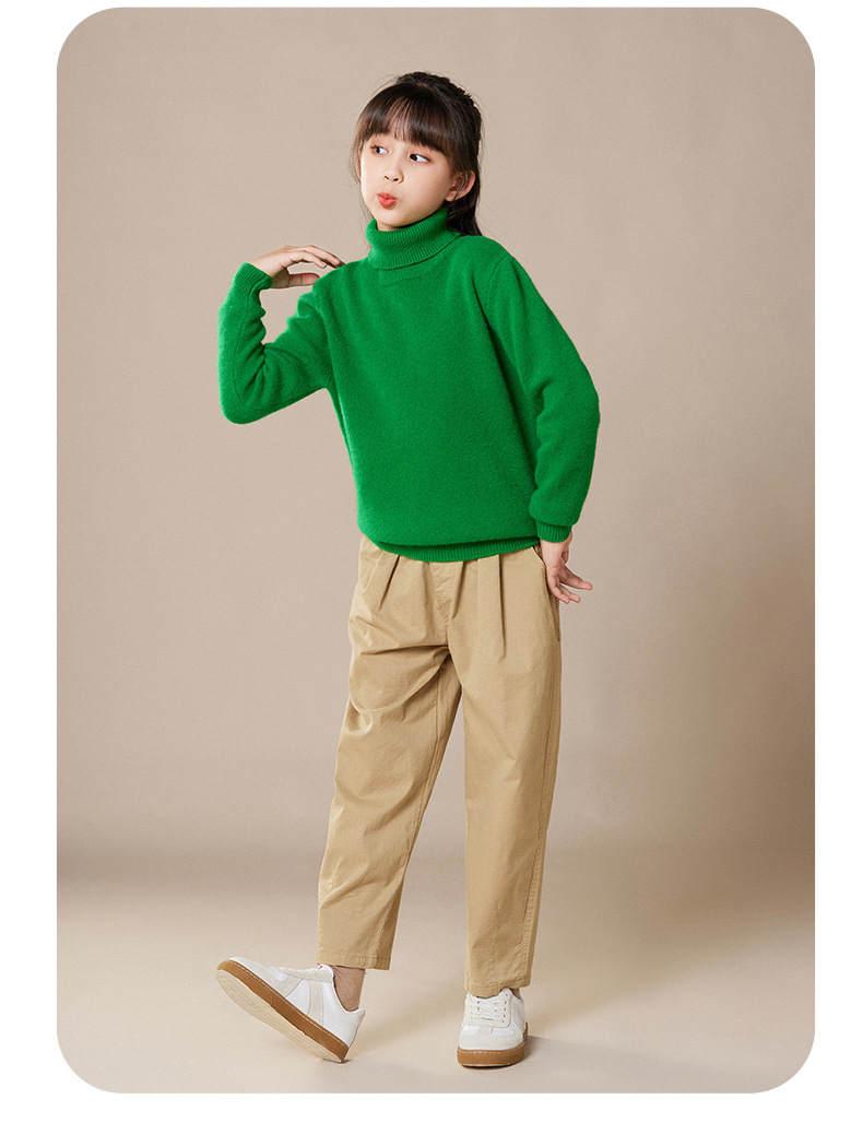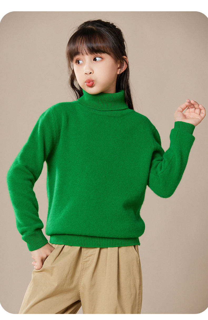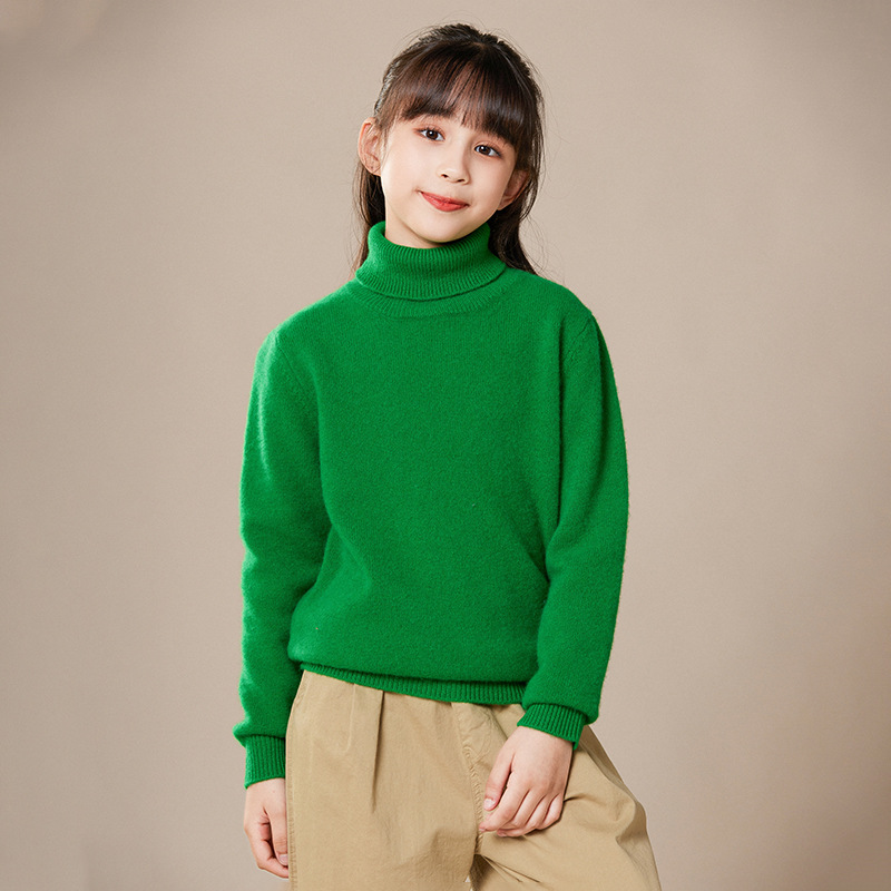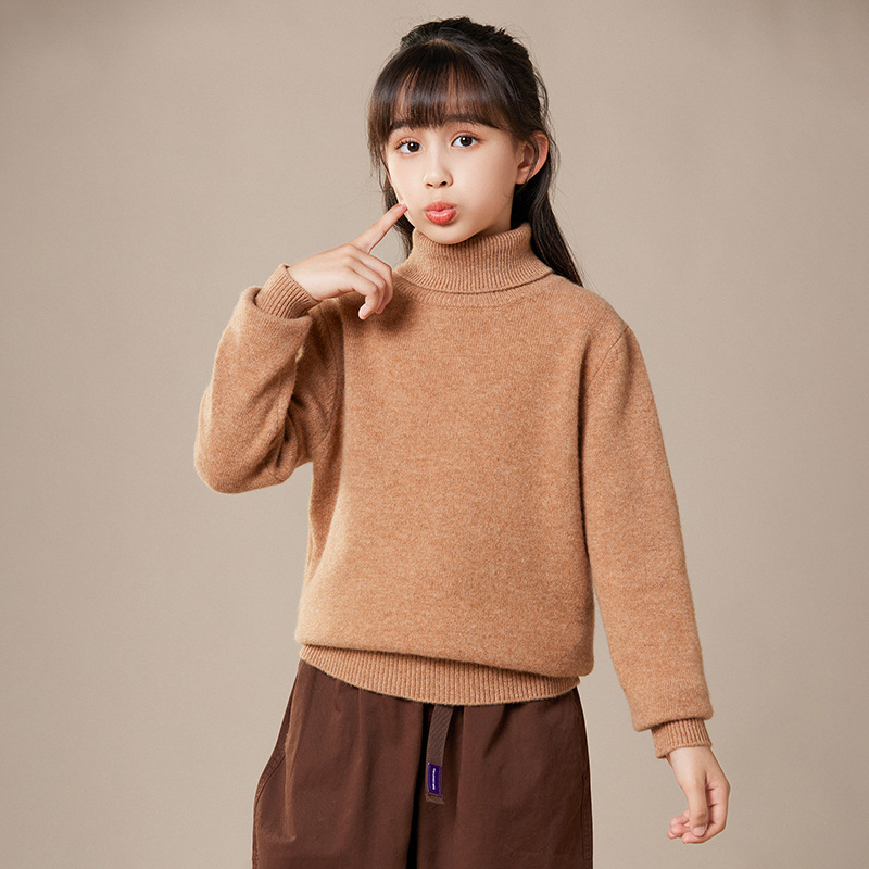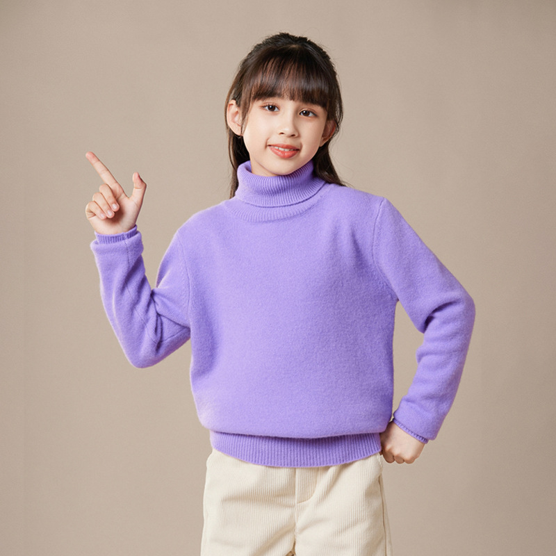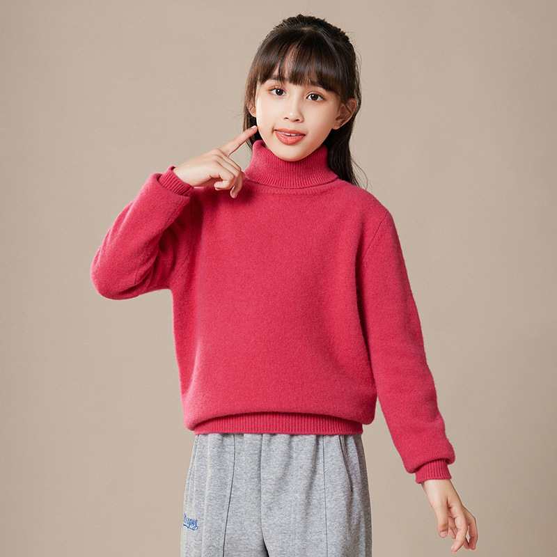 2024 가을과 겨울 새로운 높은 옷깃 아동복 유니섹스 니트 베이스 셔츠 스웨터 풀오버 캔디 컬러 학생 착용