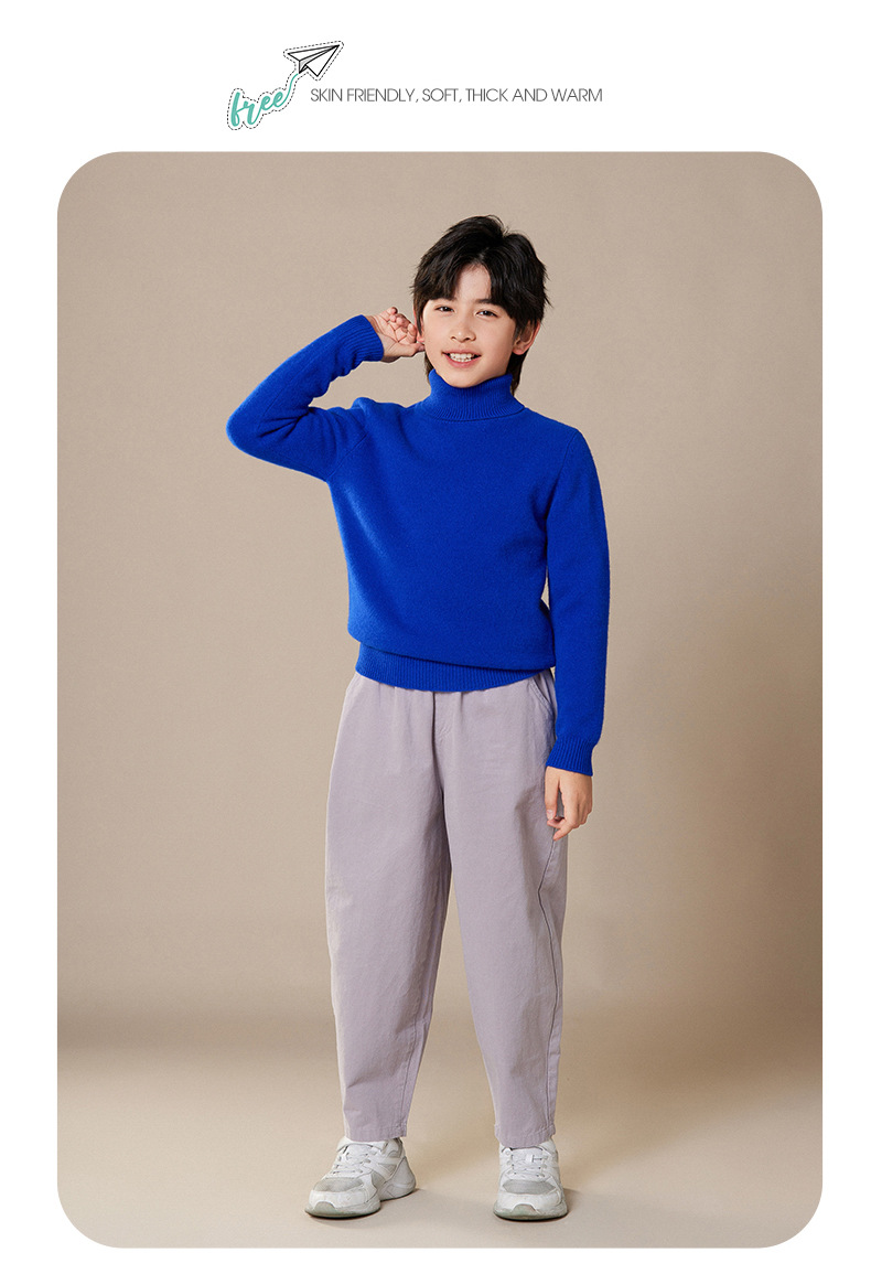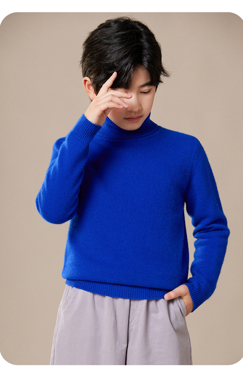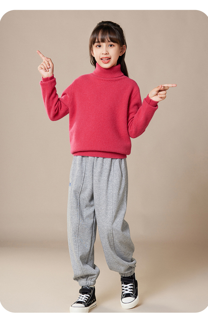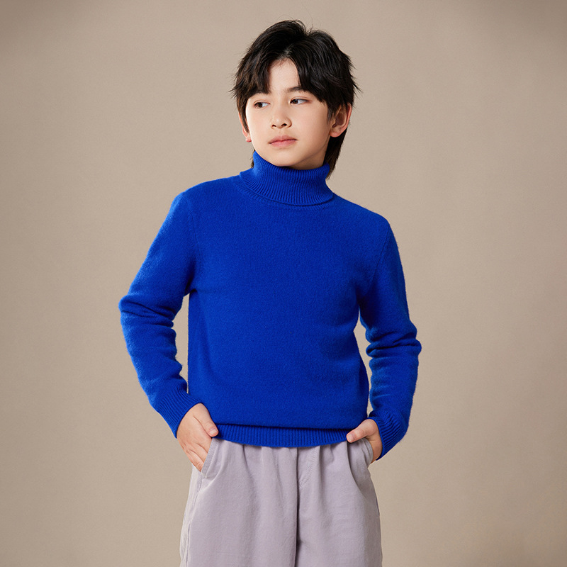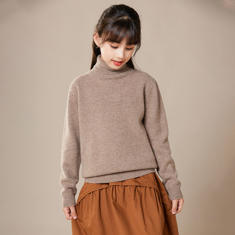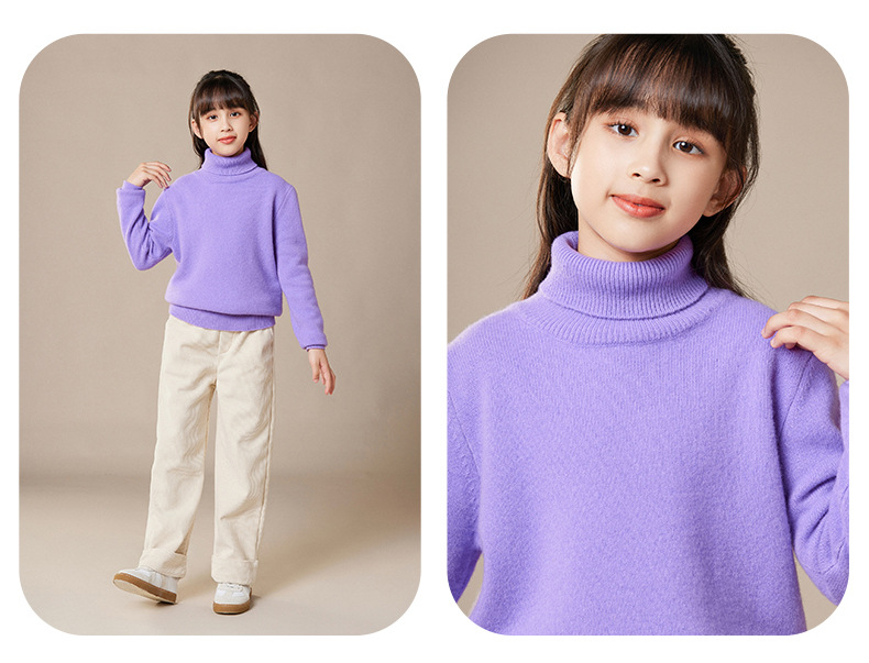2024 가을과 겨울 새로운 높은 옷깃 아동복 유니섹스 니트 베이스 셔츠 스웨터 풀오버 캔디 컬러 학생 착용