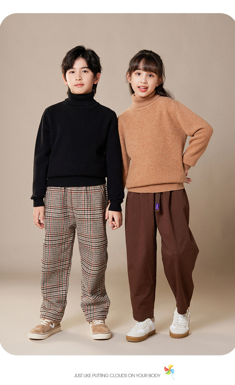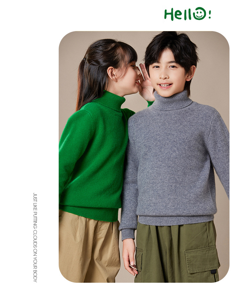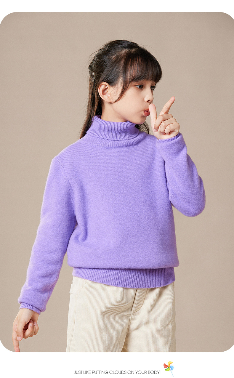 2024 가을과 겨울 새로운 높은 옷깃 아동복 유니섹스 니트 베이스 셔츠 스웨터 풀오버 캔디 컬러 학생 착용스토어 가기