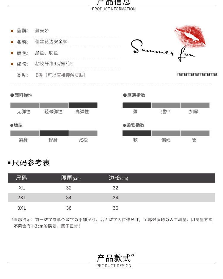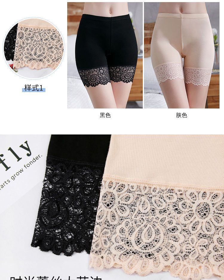 안전 바지 여성의 눈부심 방지 레이스 플러스 사이즈 통통녀 노헴 3 점 복서 안전 반바지 여성의 얇은 레깅스스토어 가기