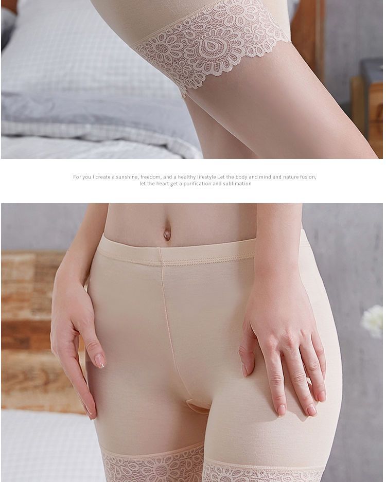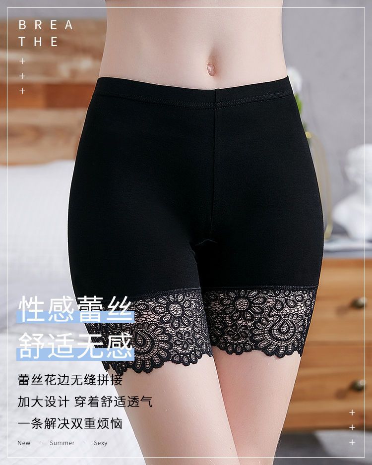 안전 바지 여성의 눈부심 방지 레이스 플러스 사이즈 통통녀 노헴 3 점 복서 안전 반바지 여성의 얇은 레깅스