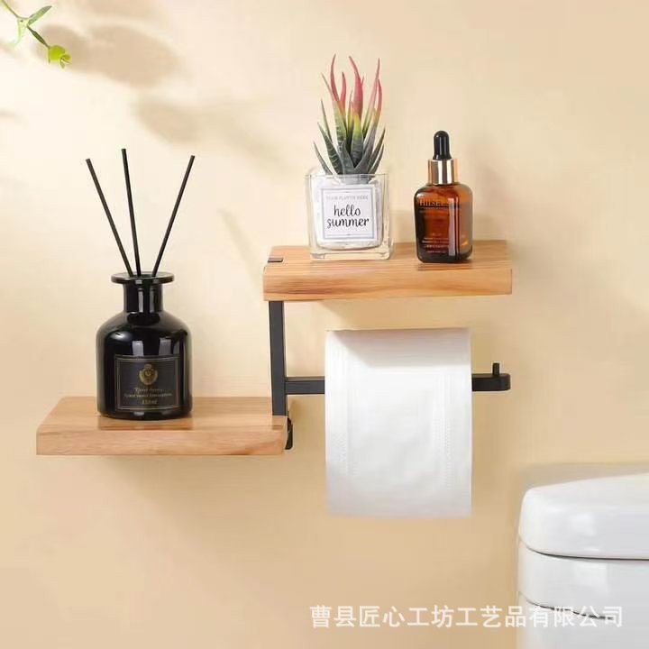 국경 간 간단한 가정용 화장실 조직 홀더 이중 층 철제 나무 조직 홀더 욕실 화장실 보관 랙과 결합