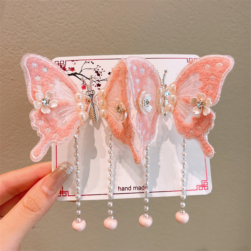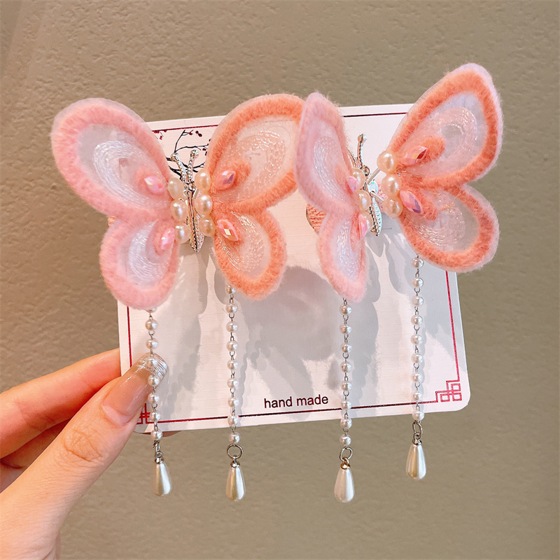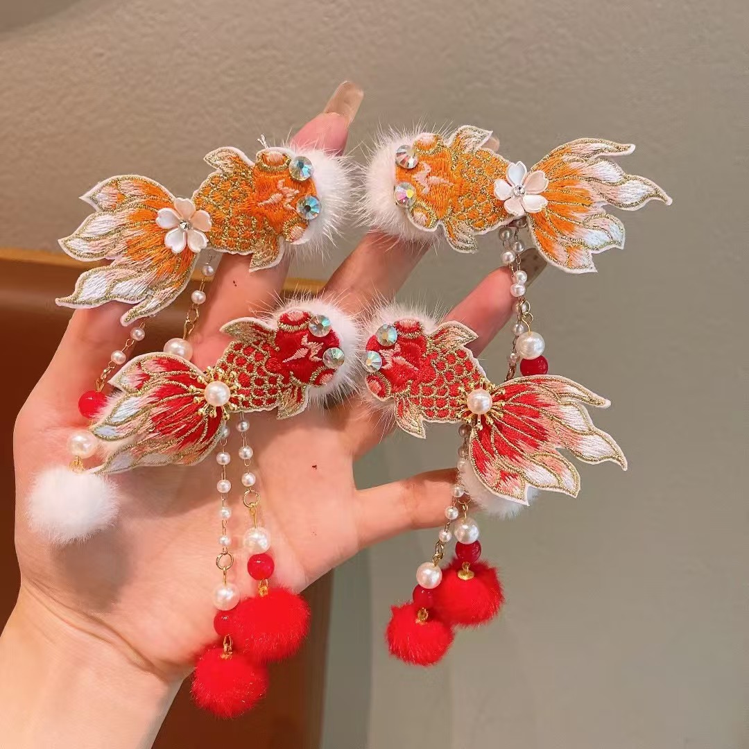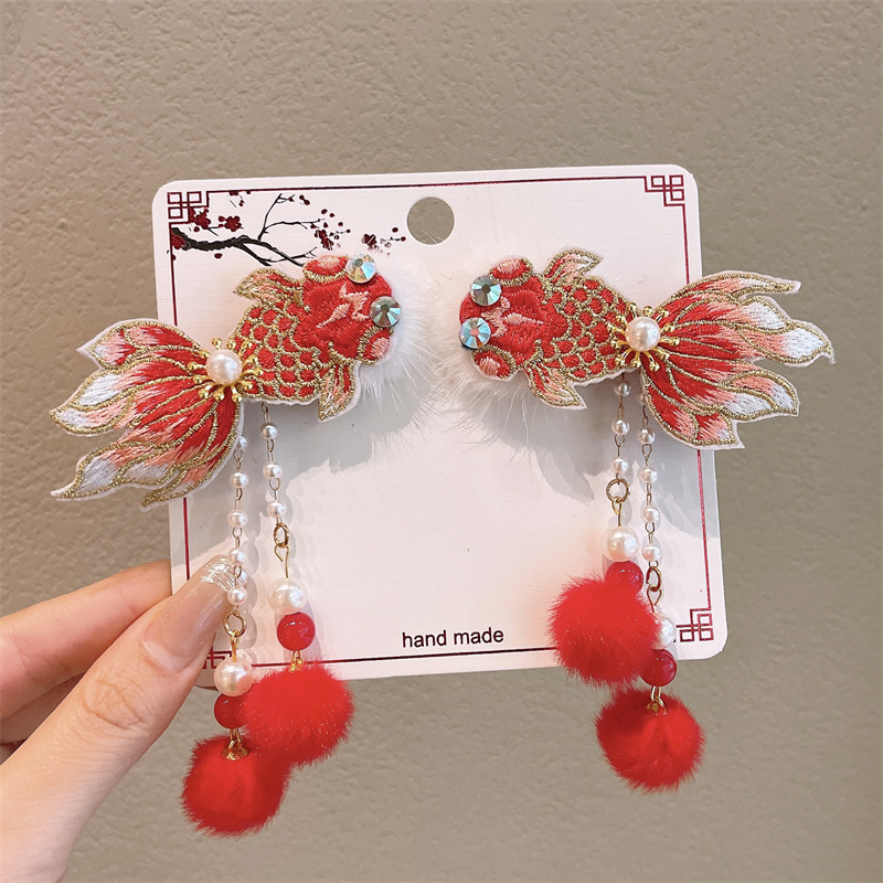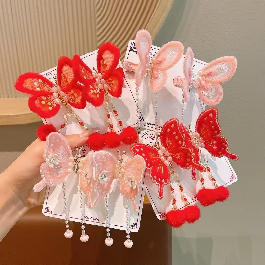 새해 어린이 빨간 활 머리핀 쌍 클립 봉제 술 헤어 핀 클립 걸스 해피 뉴 이어 헤드웨어