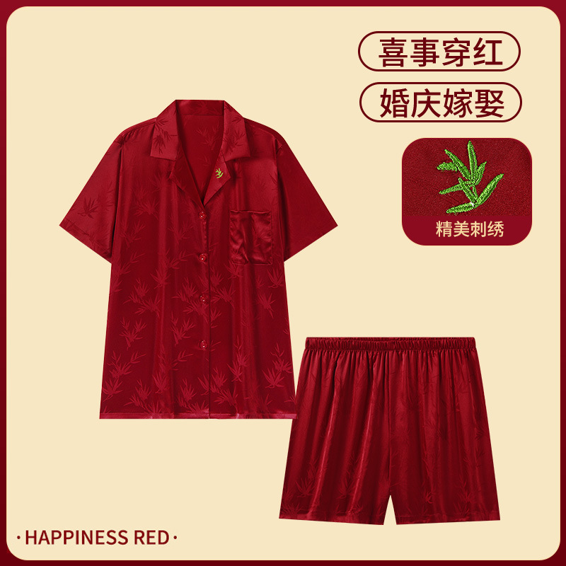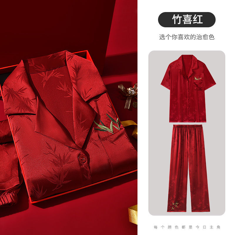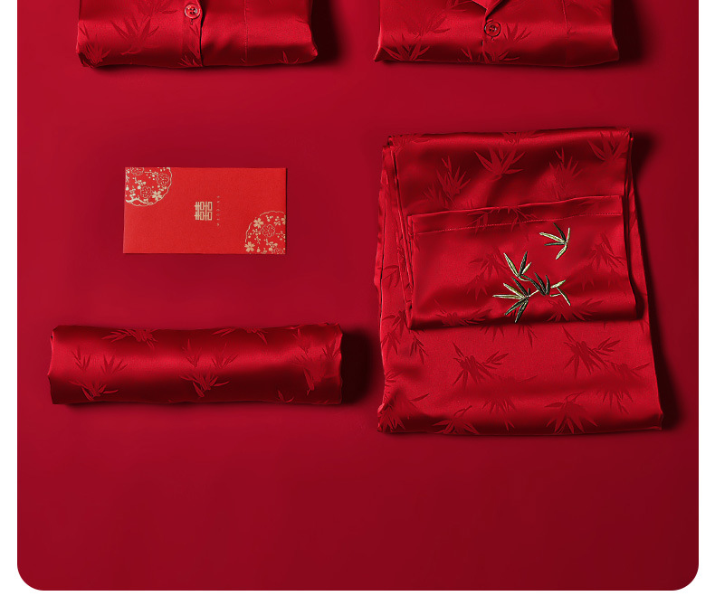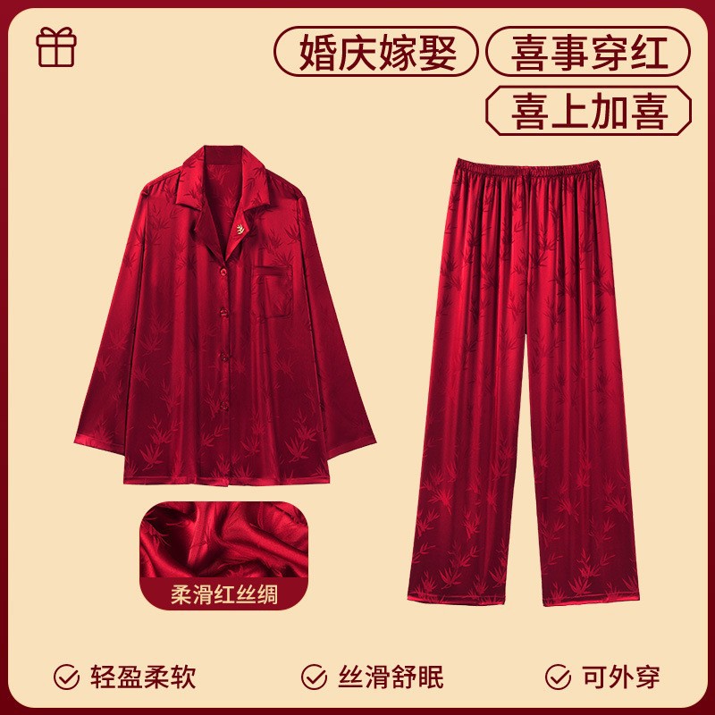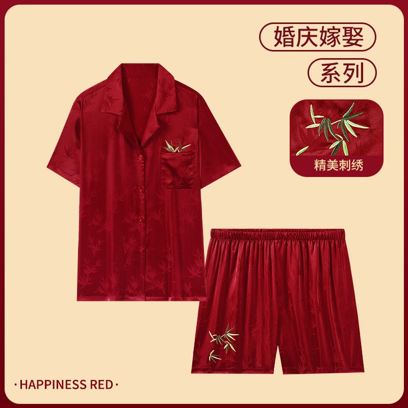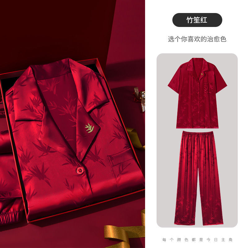 하늘의 조화~신혼연 레드 웨딩 파자마 커플세트 축제 레드 파자마 커플 아이스 실크 파자마