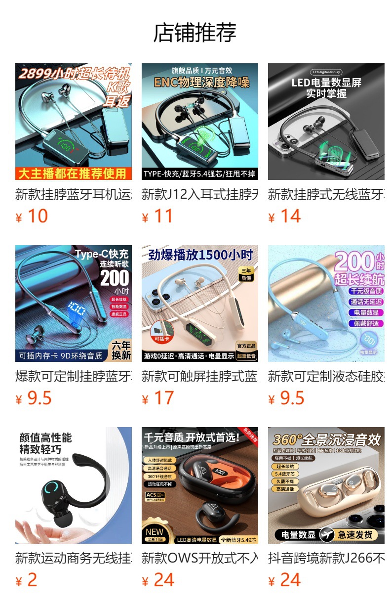 새로운 목에 매달린 무선 블루투스 헤드셋 긴 내구성 풀 미러 스크린 디지털 디스플레이 모션 노이즈 감소는 범용 용으로 사용될 수 있습니다.스토어 가기