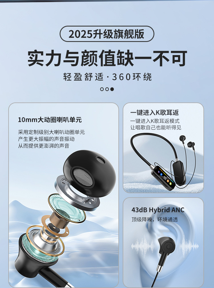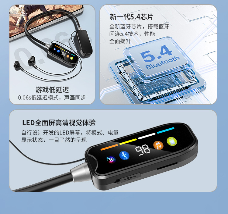 새로운 목에 매달린 무선 블루투스 헤드셋 긴 내구성 풀 미러 스크린 디지털 디스플레이 모션 노이즈 감소는 범용 용으로 사용될 수 있습니다.